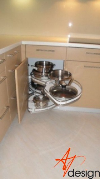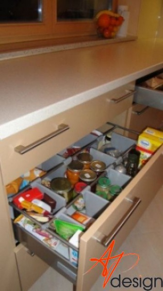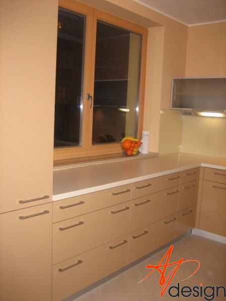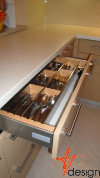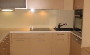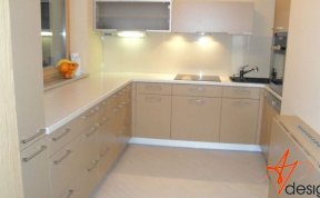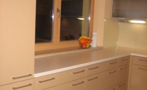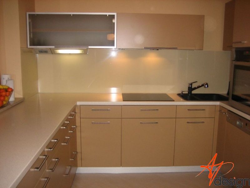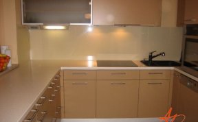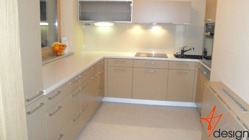 Kuchyňská linka je navržena v linii, která je opakující se po celé délce. Záda kuchyňské linky jsou ze skla Lacobel.