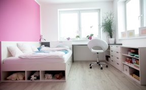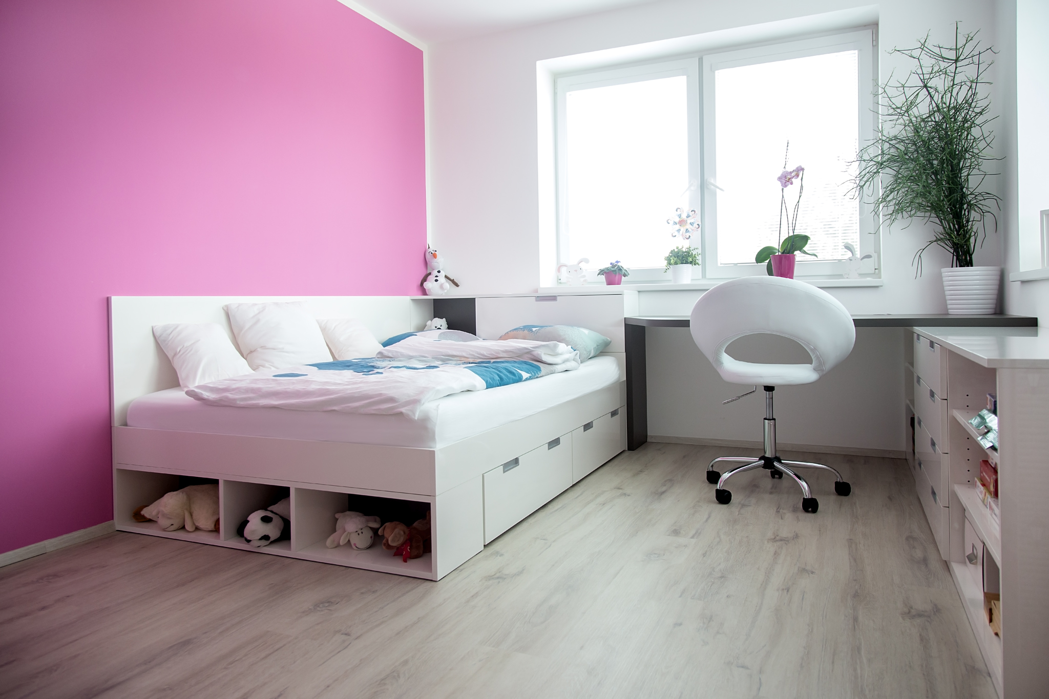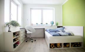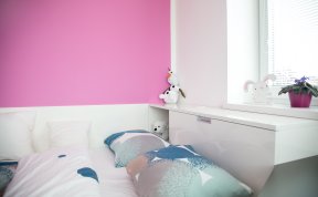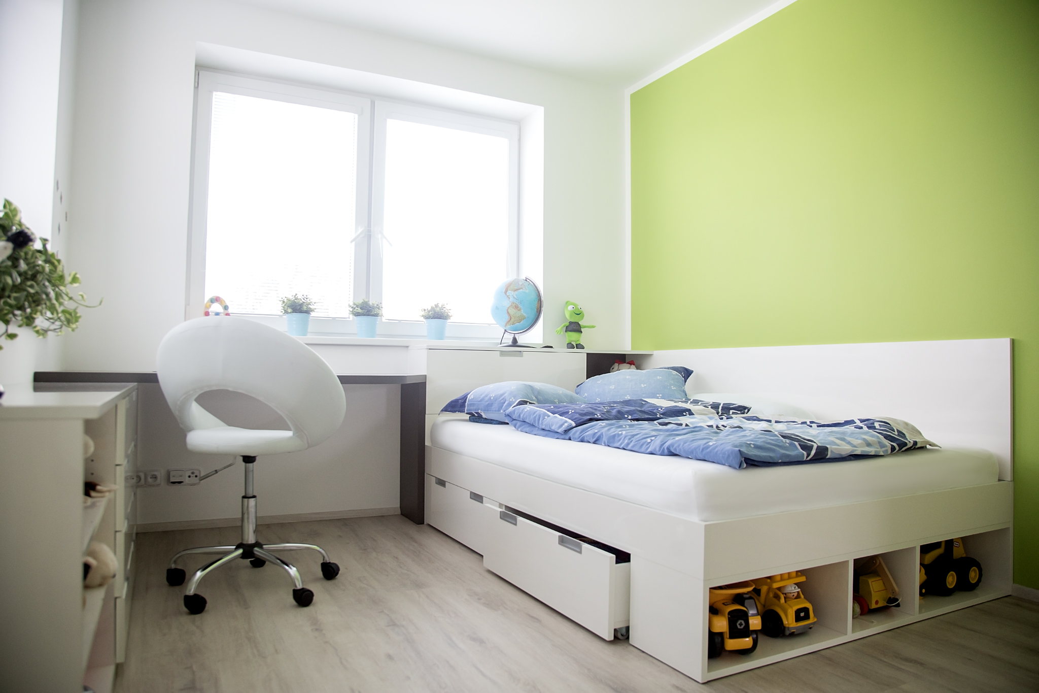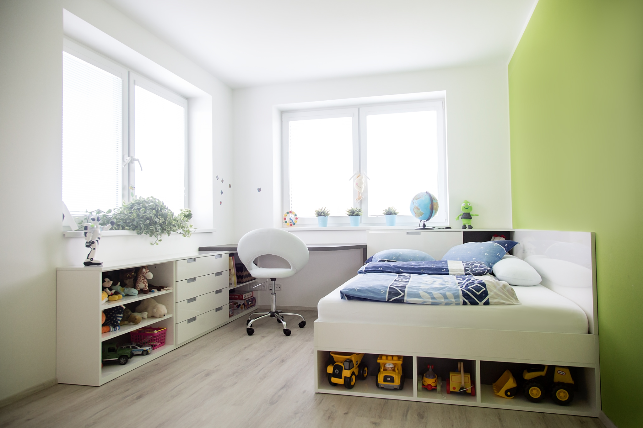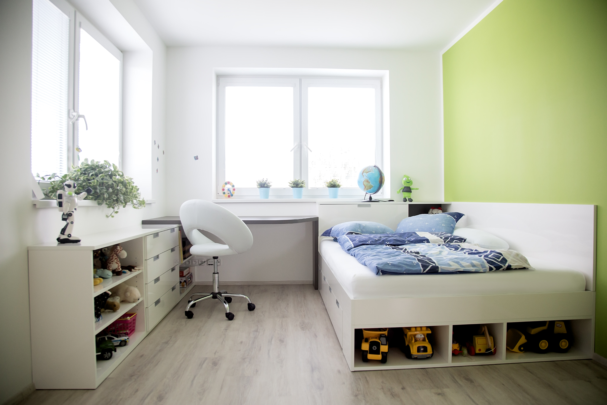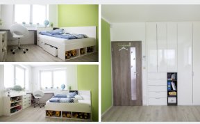 Mladá maminka mě oslovila v době, kdy byla Sára v poslední školkové třídě a potřebovala vyřešit prostor, který byl doposud pouze hernou. Druhý pokoj, Maxův, byl zase spíše ložnice.