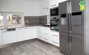 Kuchyň sice není originální, ale je praktická a funkční.