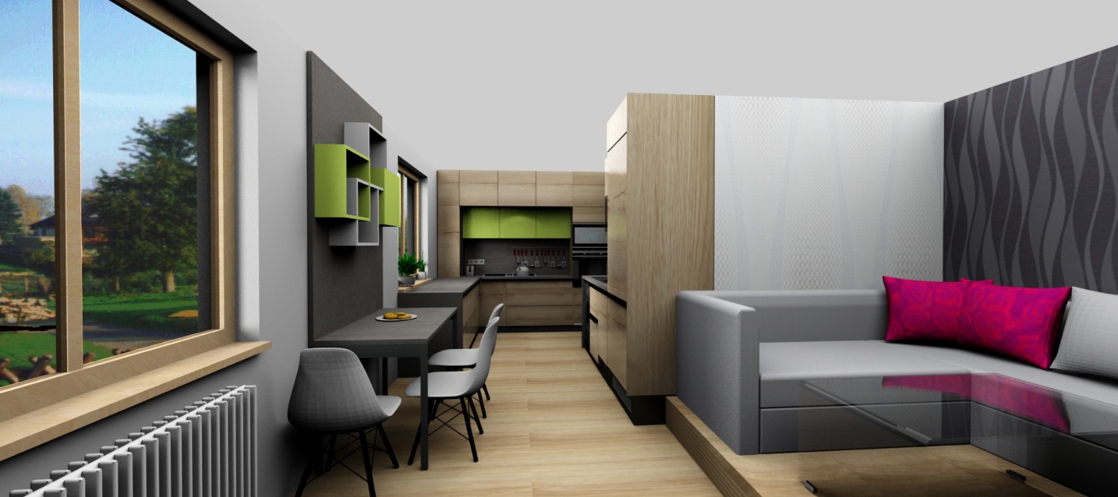 Návrh kuchyně s obývákem do RD v Klimkovicích pro manžele Malé