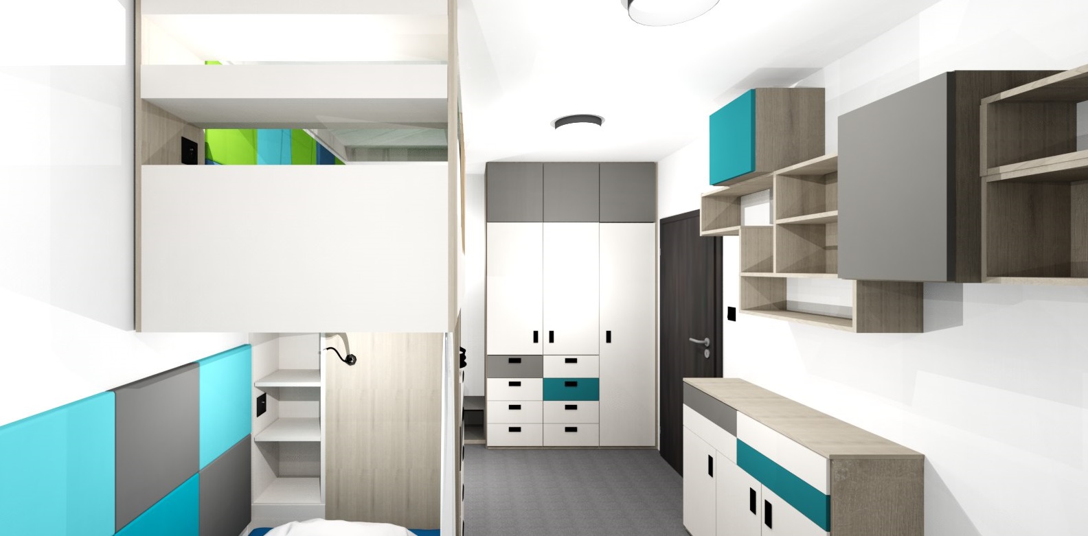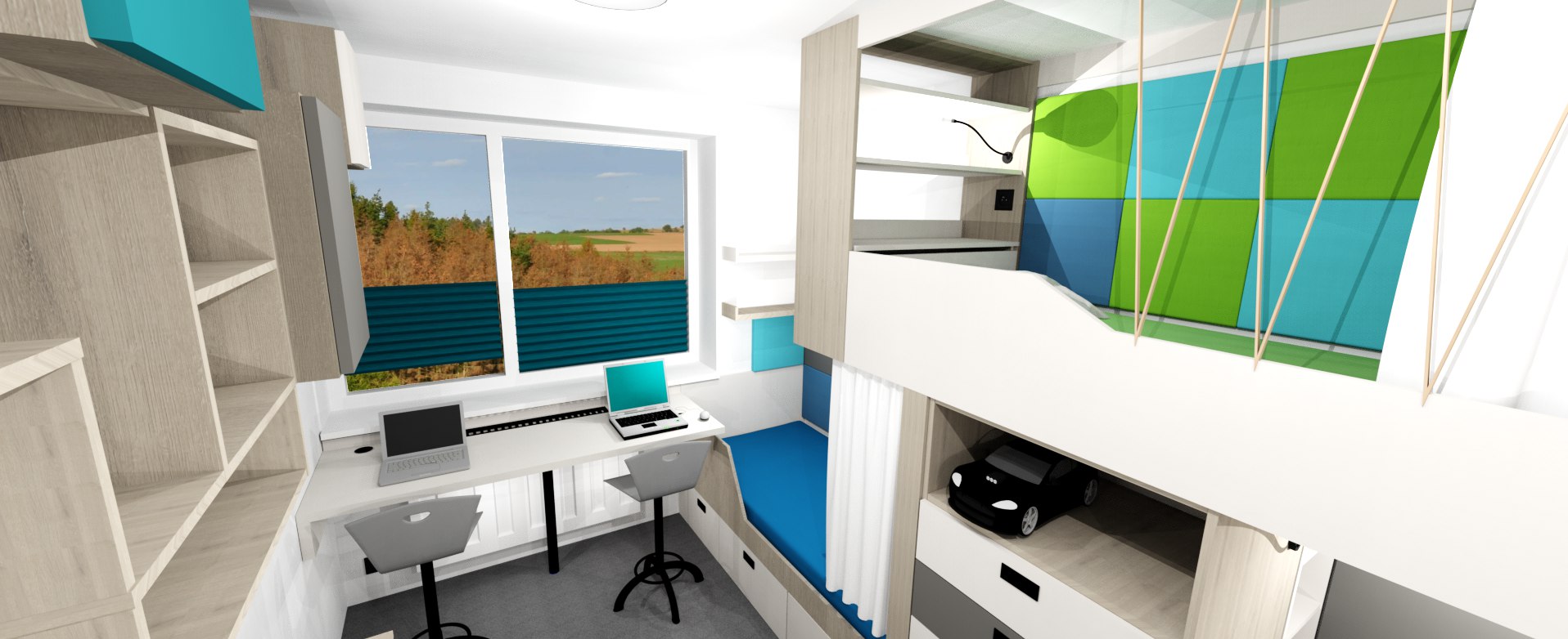 • Návrh a realizace dvou studentských pokojů pro Davída a Klárku