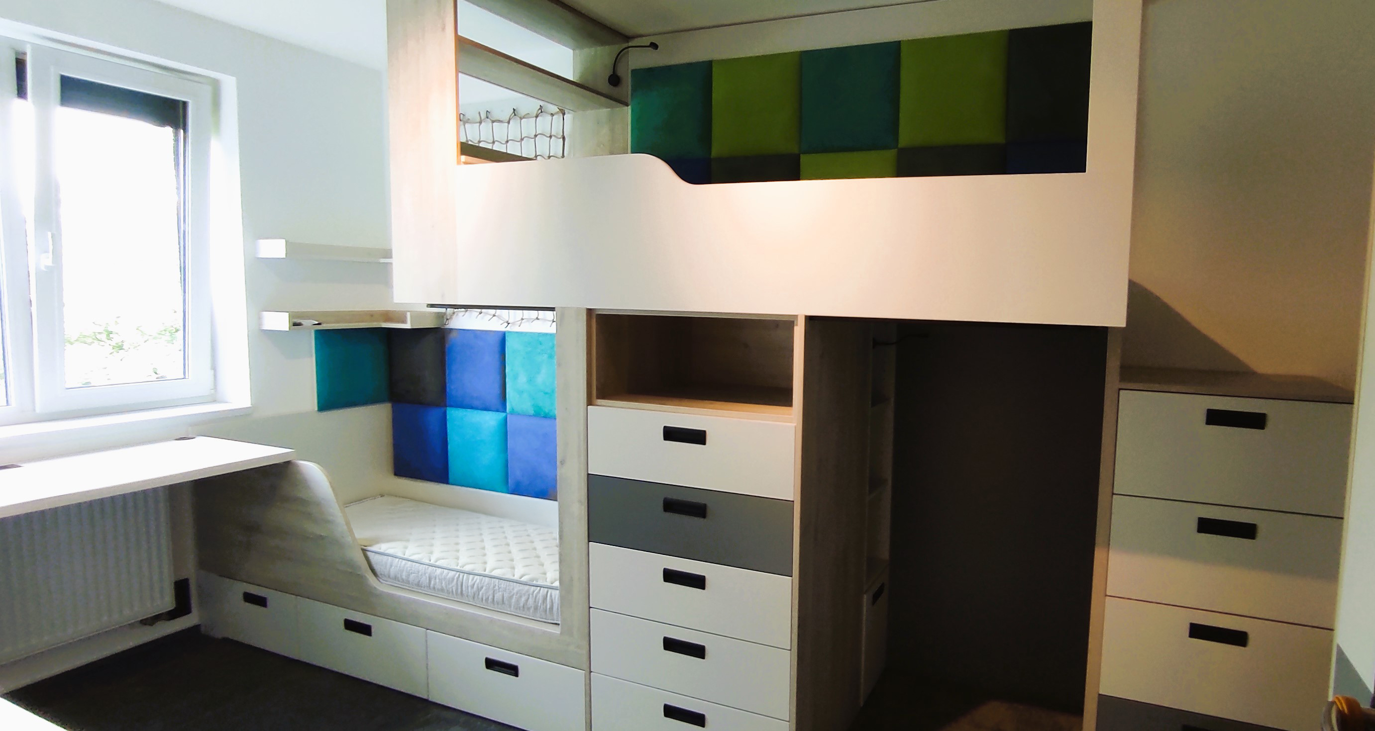 • Návrh a realizace dětského pokoje z masivu pro Honzu, Vítka a Jakuba