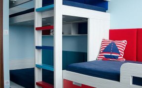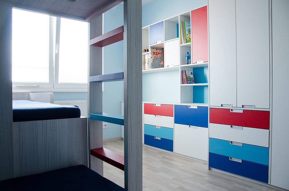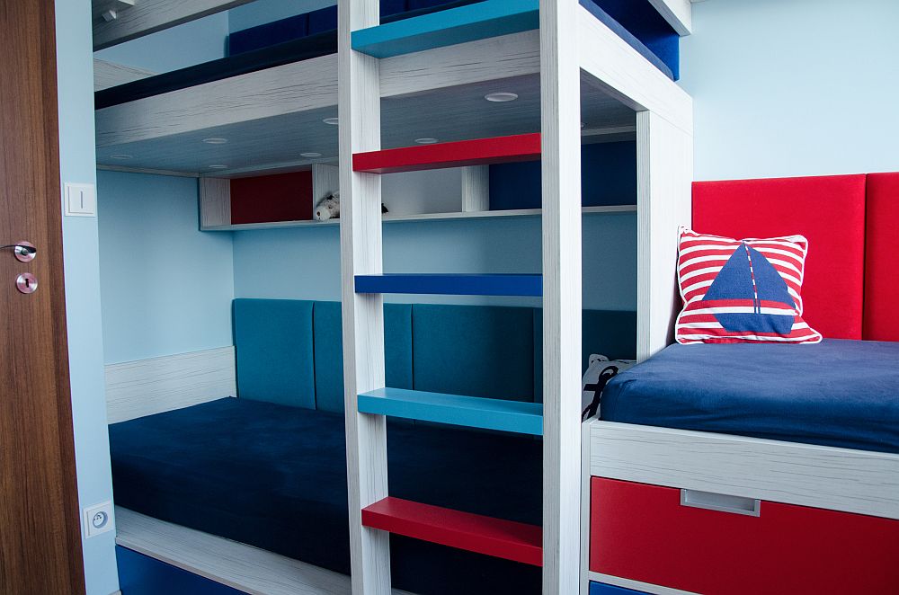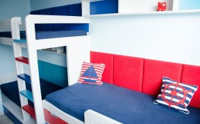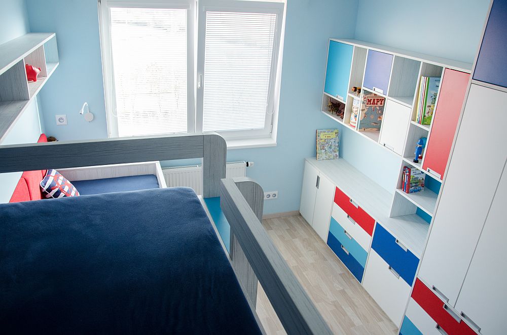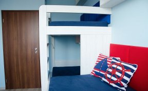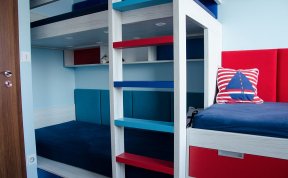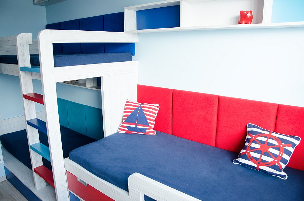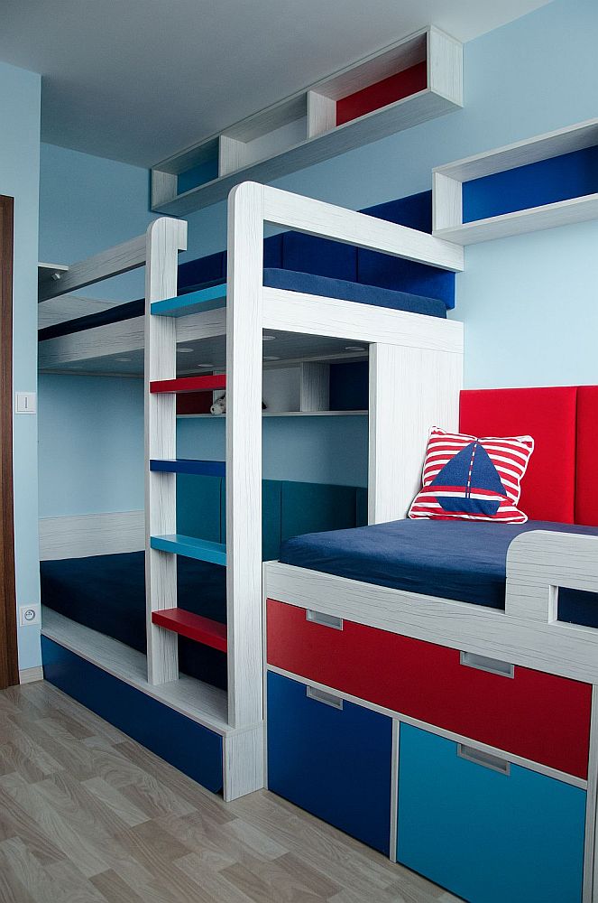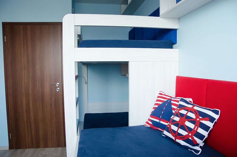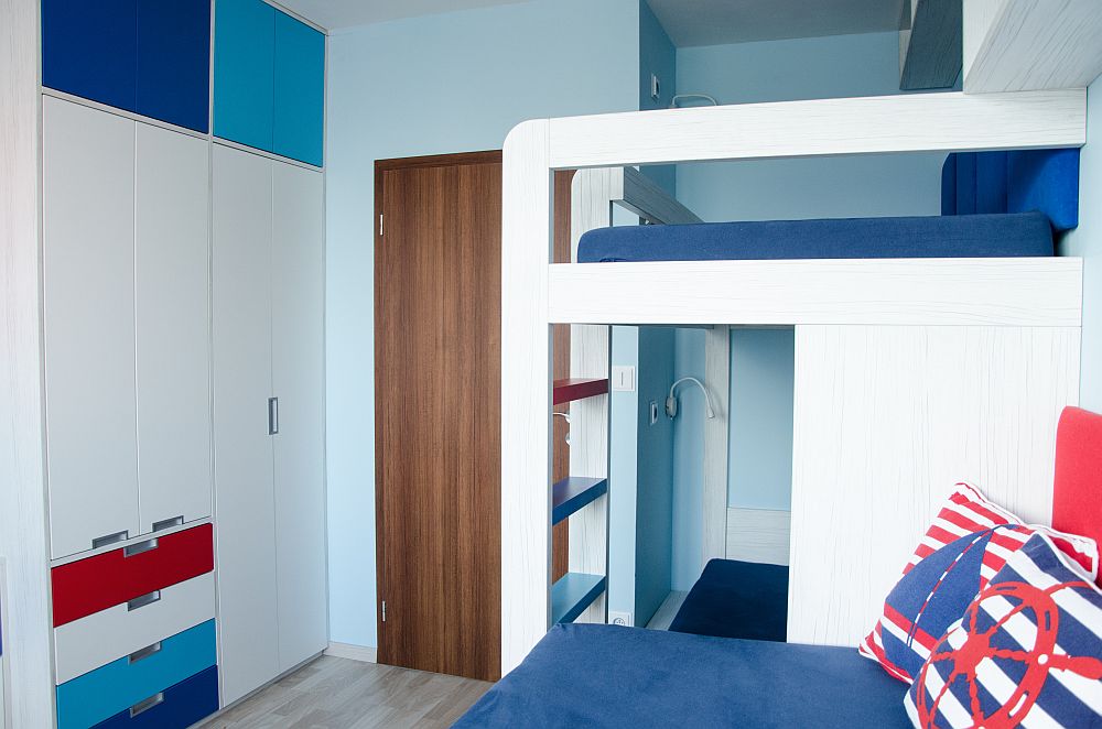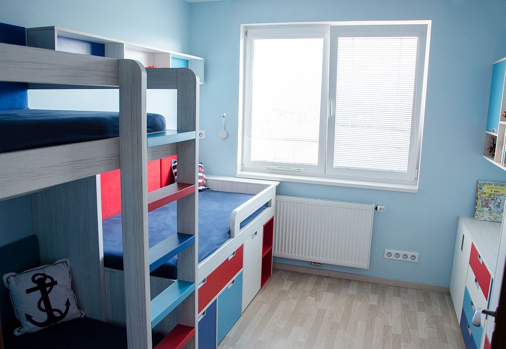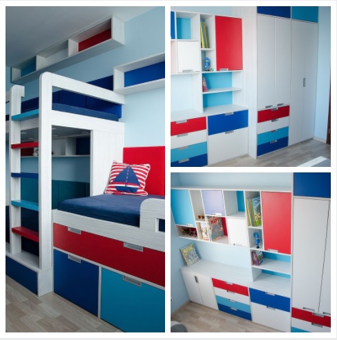 Návrhy jsme doladili docela rychle, ale s kombinací barev jsme stále váhali. Rodiče chtěli zapojit i kluky, takže i ti se stali poradním týmem. Nakonec uspěla kombinace, která barevně připomíná námořnický styl. Oba kluci mají rádi lodě a vodní svět obecně. Takže si to kluci vytuní samolepícími dekoracemi.