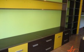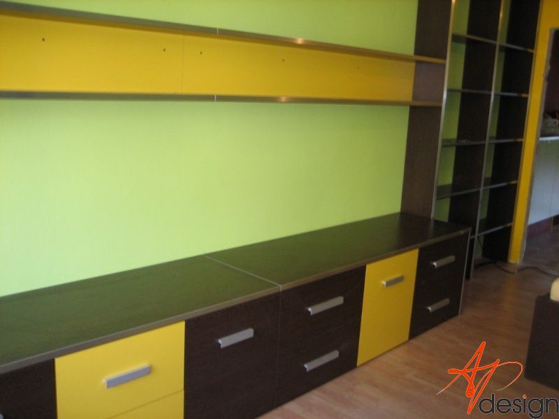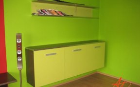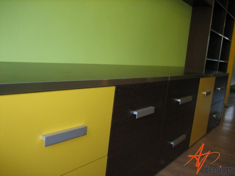 Barevné ladění interiéru do wengé v kombinaci se zelenou - žlutou a červenou. Na návrhy se můžete podívat na http://apdesign.cz/reference/navrh-bytu-ve-vrsovicich/P_68...