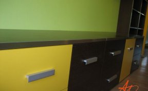 Barevné ladění interiéru do wengé v kombinaci se zelenou - žlutou a červenou. Na návrhy se můžete podívat na http://www.apdesign.cz/reference/navrh-bytu-ve-vrsovicich/P_68...