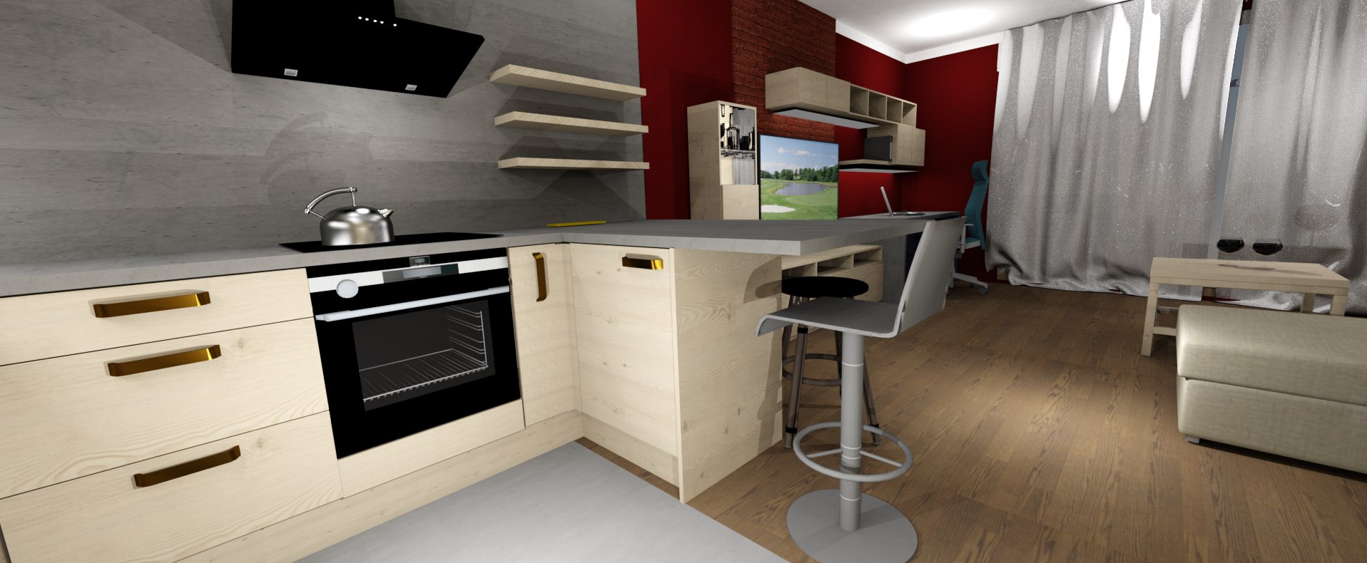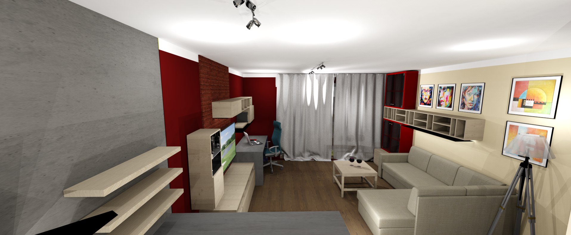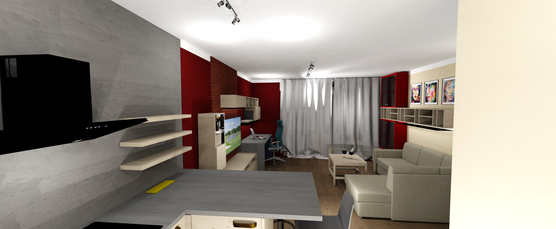 • Návrh ideového a barevného řešení garsonky