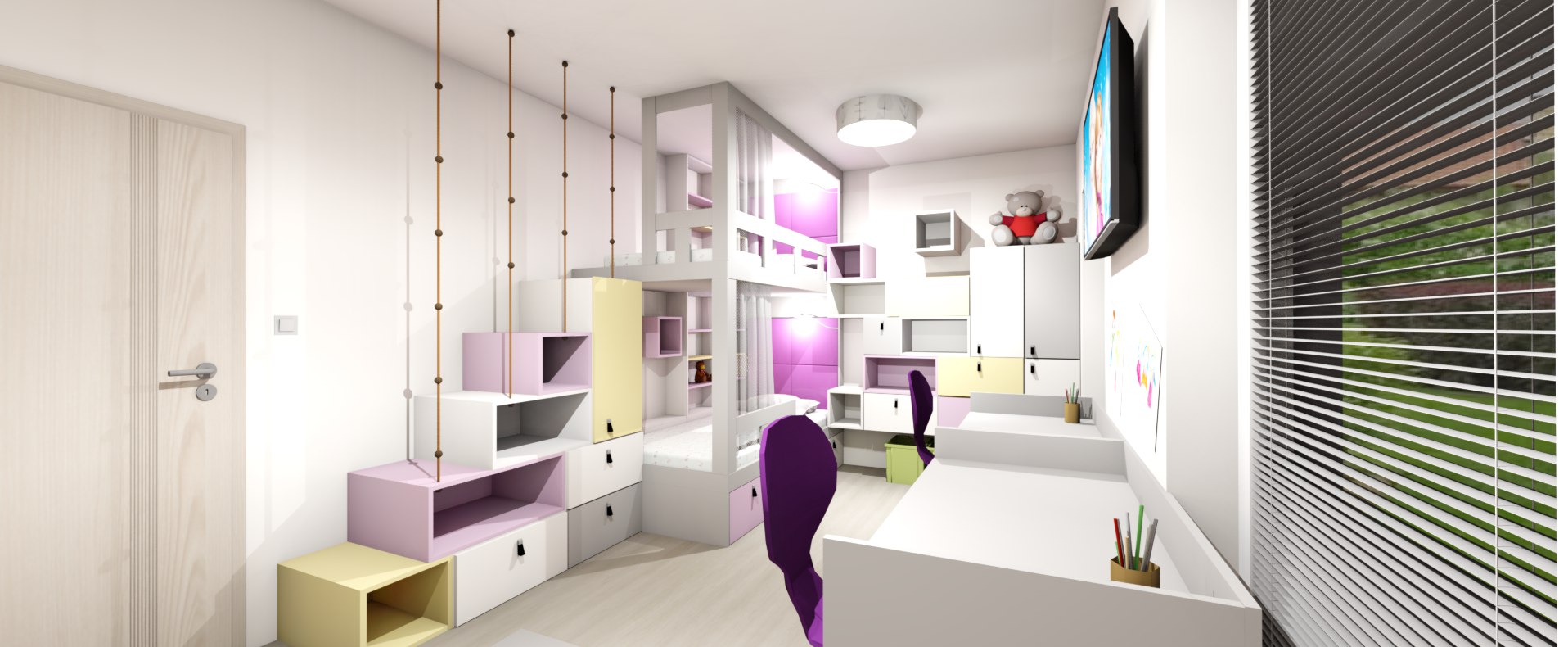 • Návrh dětského pokoje pro Lindu a Adámka z Prahy 4 - Lhotky