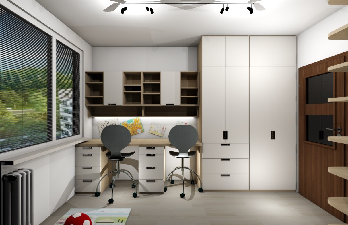 • Návrh dětského pokoje pro Lindu a Adámka z Prahy 4 - Lhotky