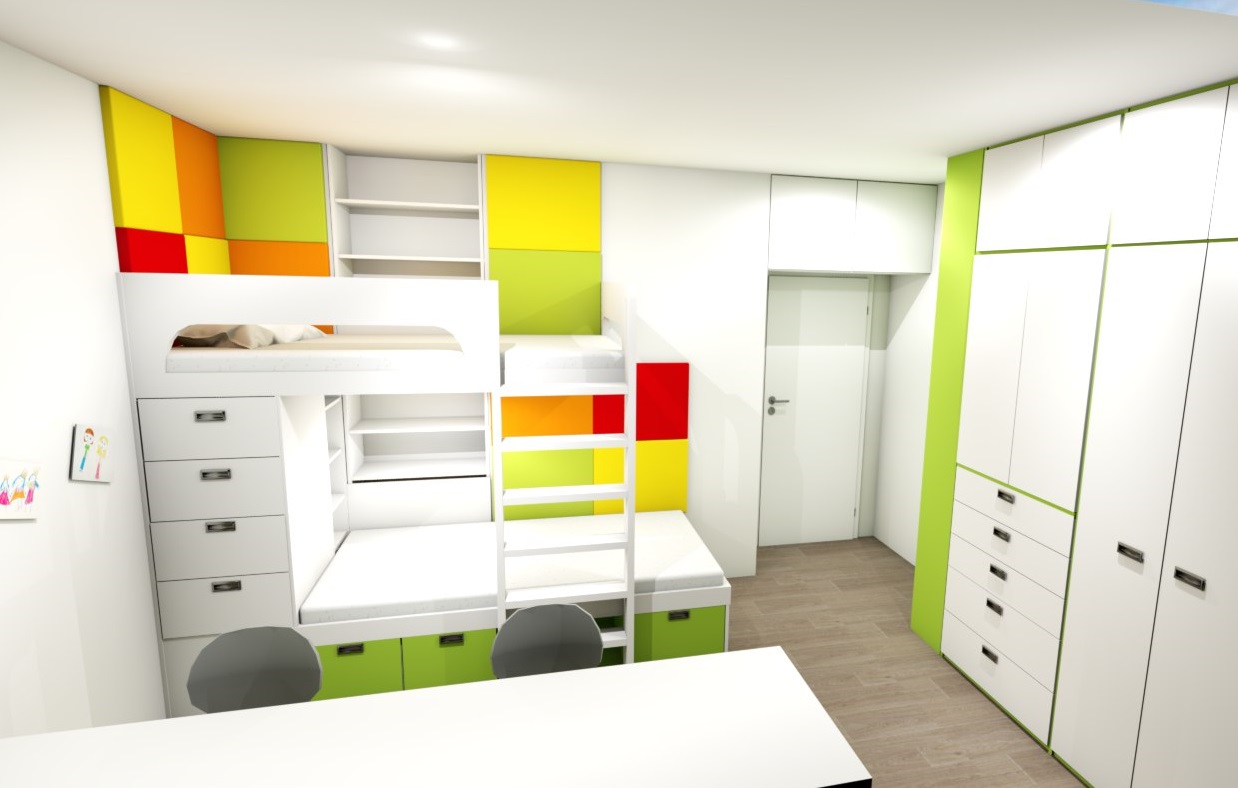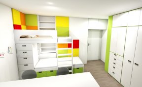 • Návrh dětského pokoje pro Lindu a Adámka z Prahy 4 - Lhotky