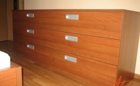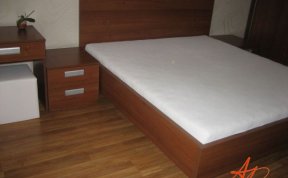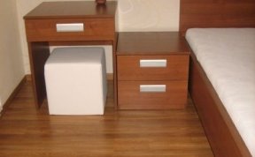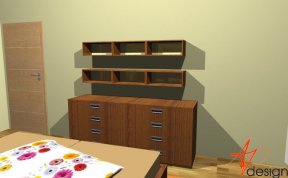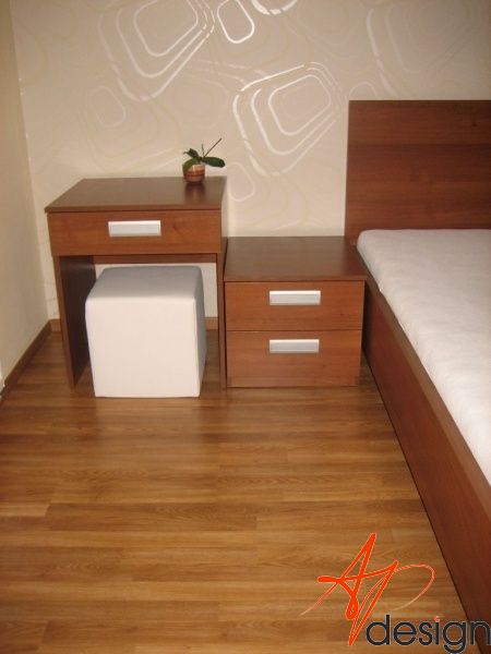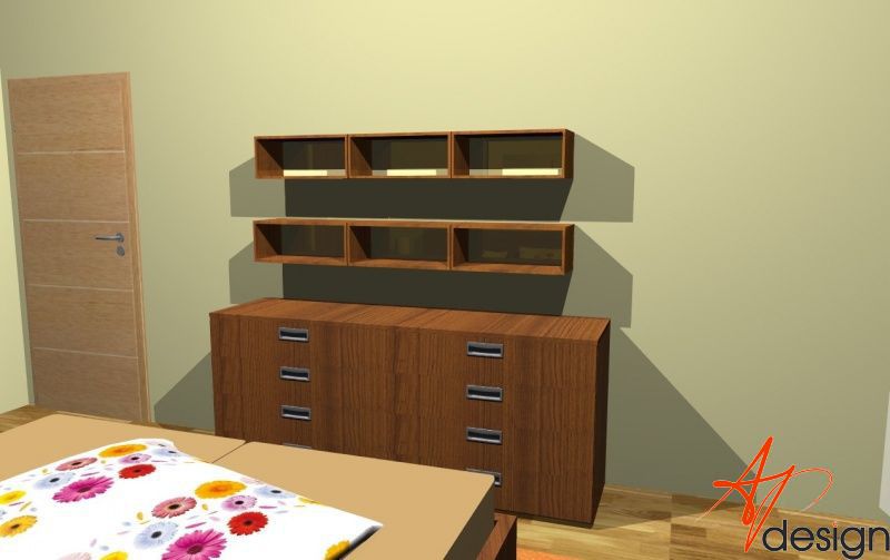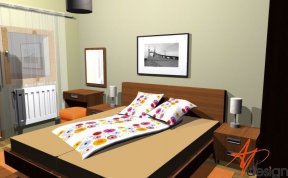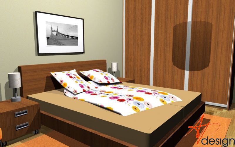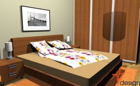 Klientce jsme navrhli několik variant barevného řešení ložnice. Dispoziční řešení bylo od počátku dáno dodavatelem stavby. Proto jsme se zaměřili především na design a barevné řešení. Navrhli jsme na dominantní stěnu umístit tapetu, která ozdobila svým způsobem konzervativní vzhled nábytku. Barvu na stěny jsme doporučili okrovou.