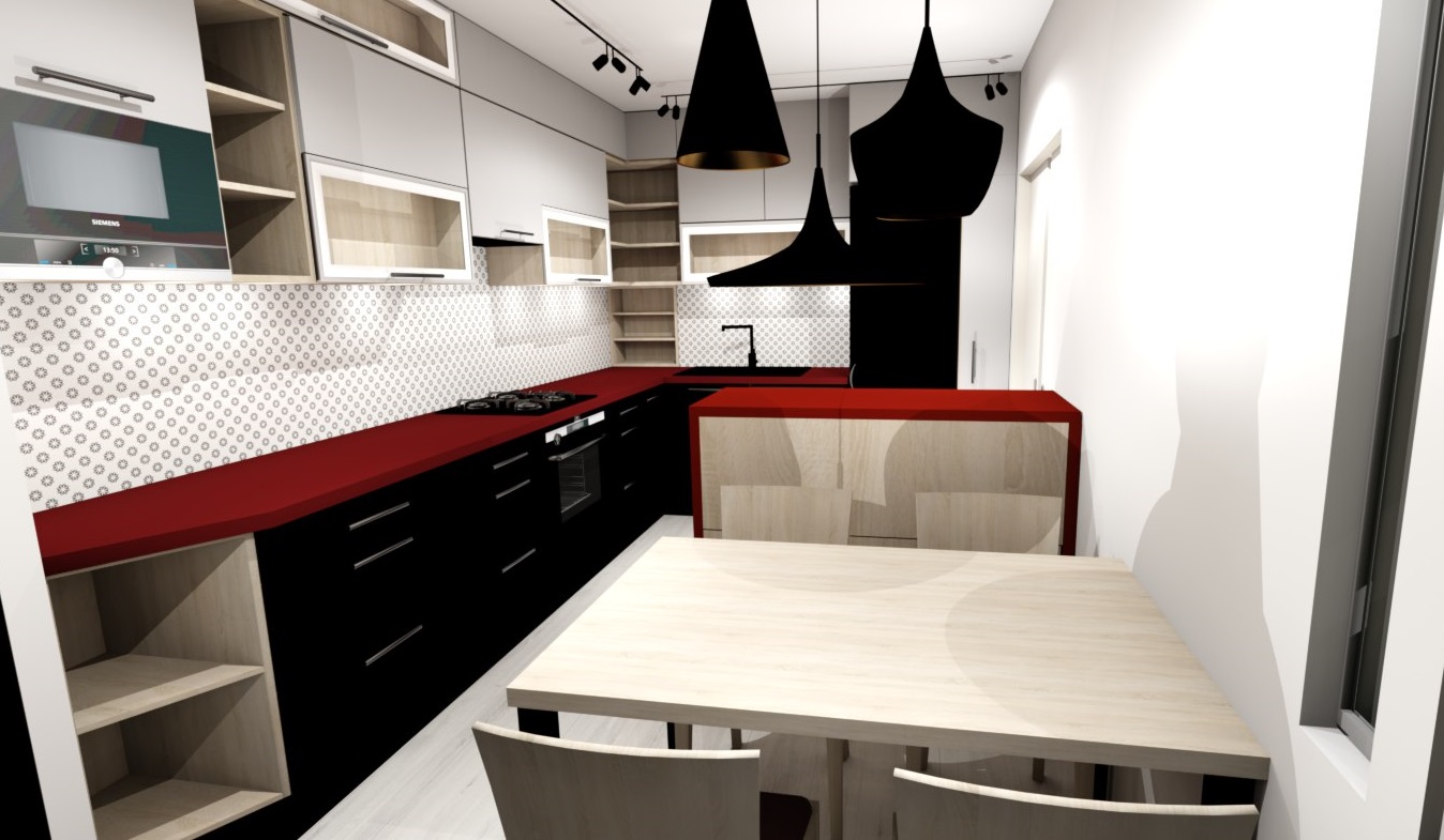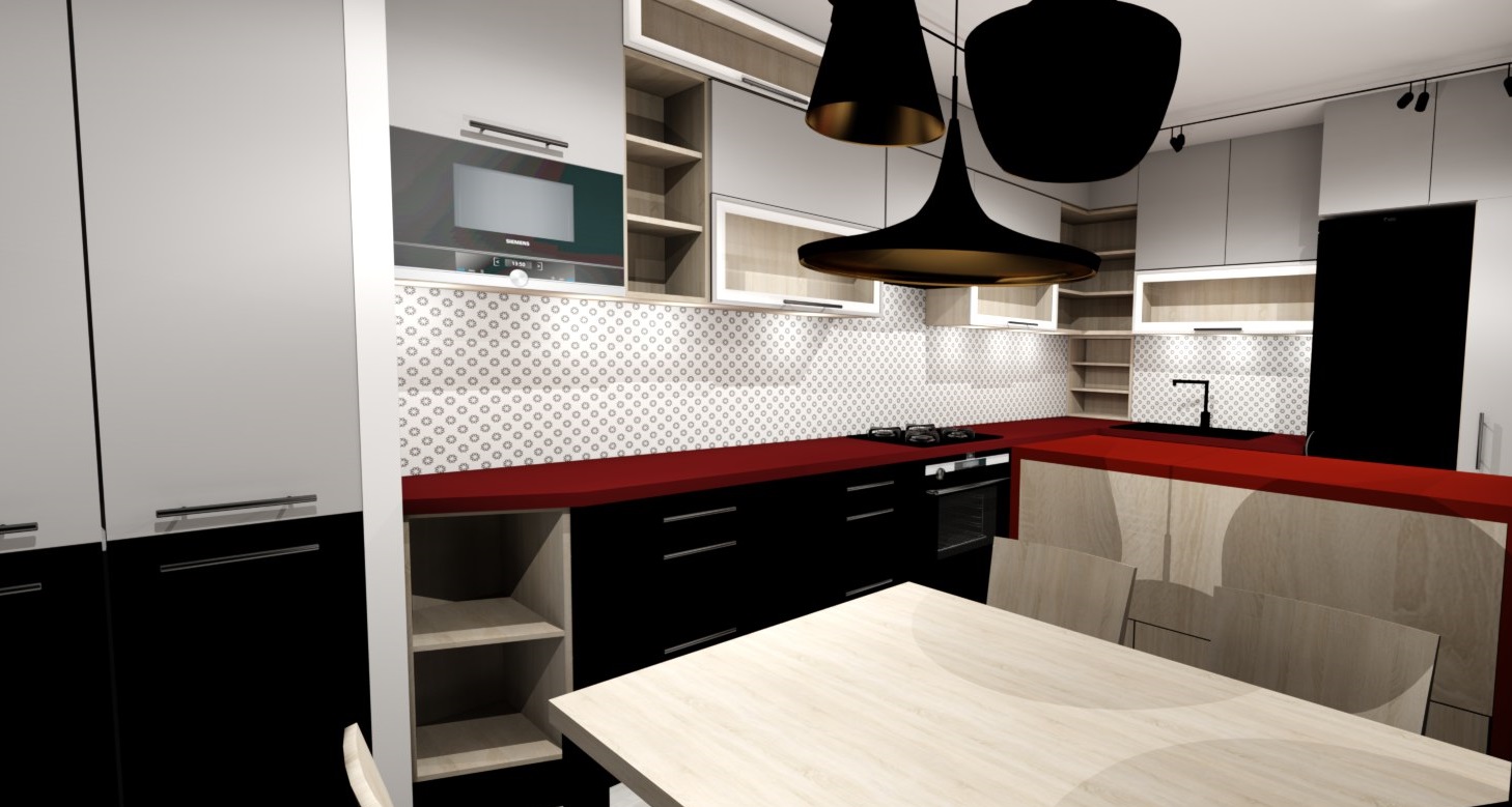 • Návrh kuchyně s obývákem do RD v Klimkovicích pro manžele Malé
