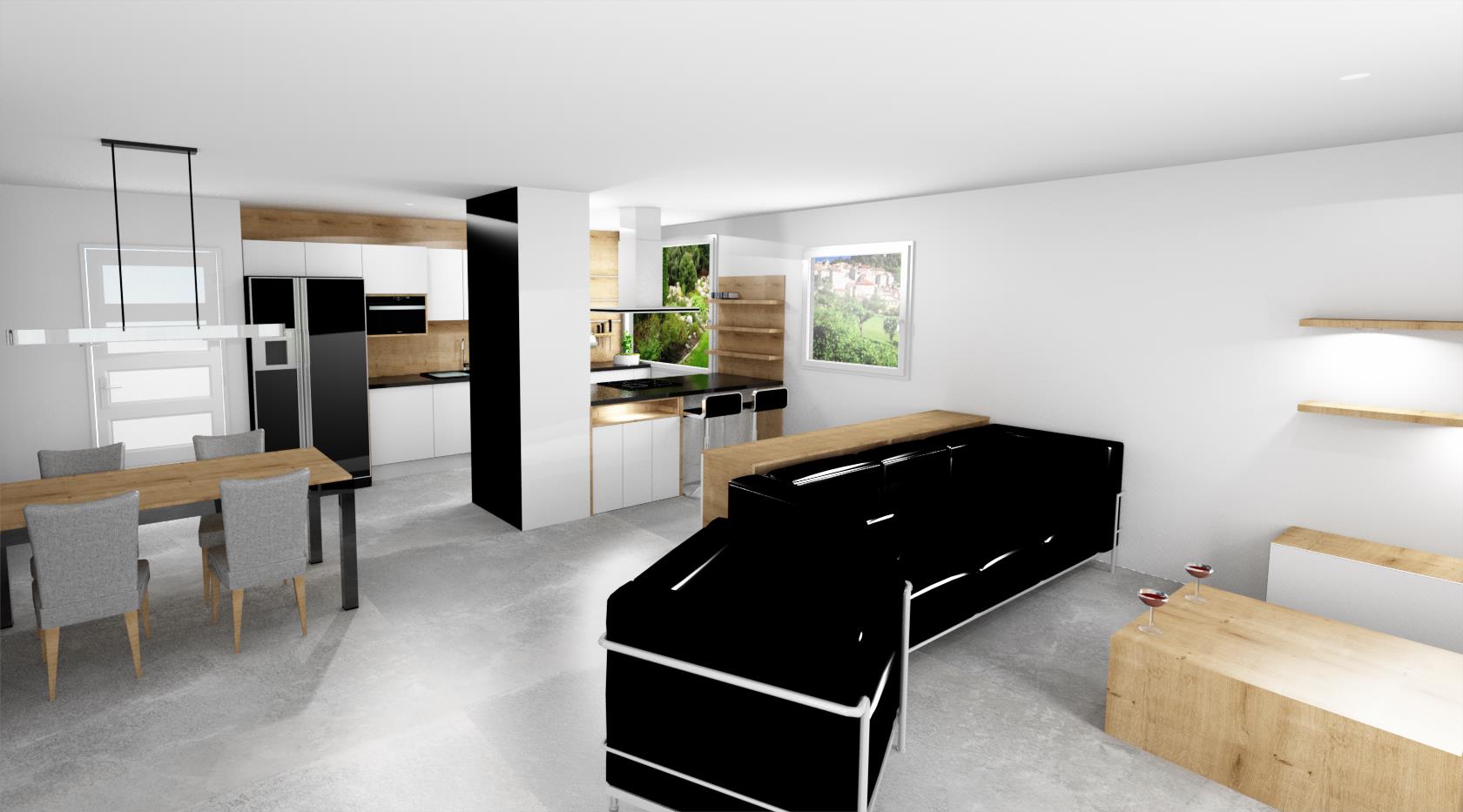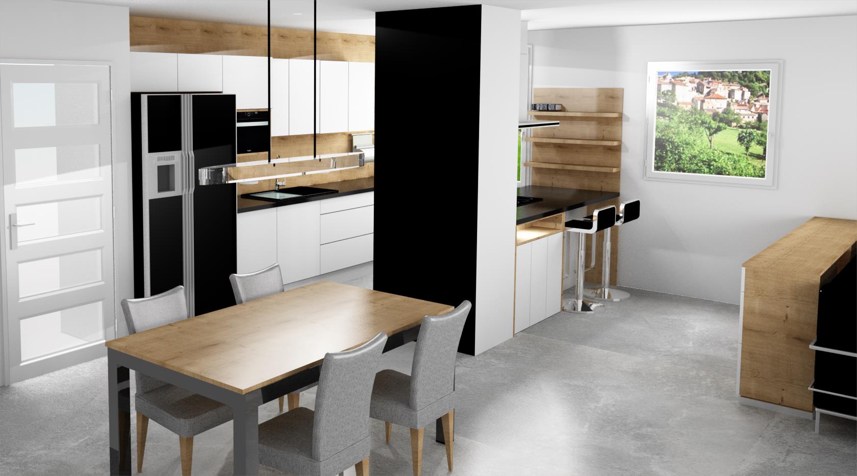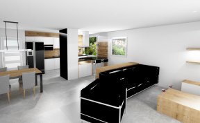 • Návrh kuchyně s jídelnou a obývákem do projektu Zahrady Bohdalec