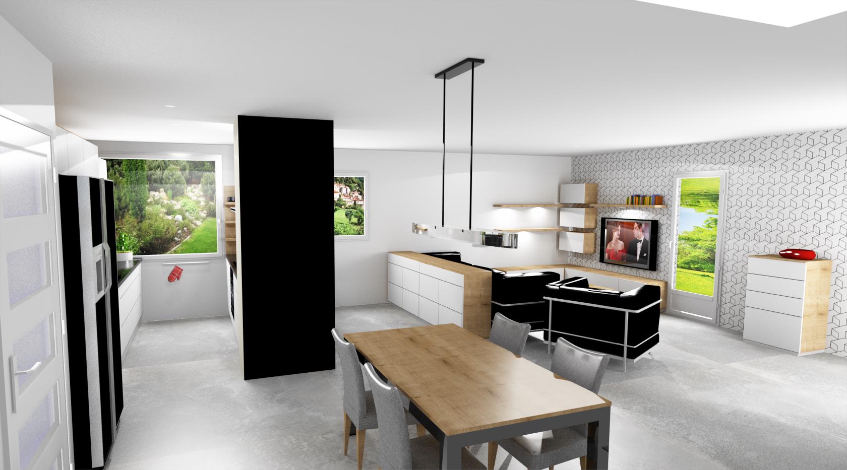 • Návrh kuchyně s jídelnou a obývákem