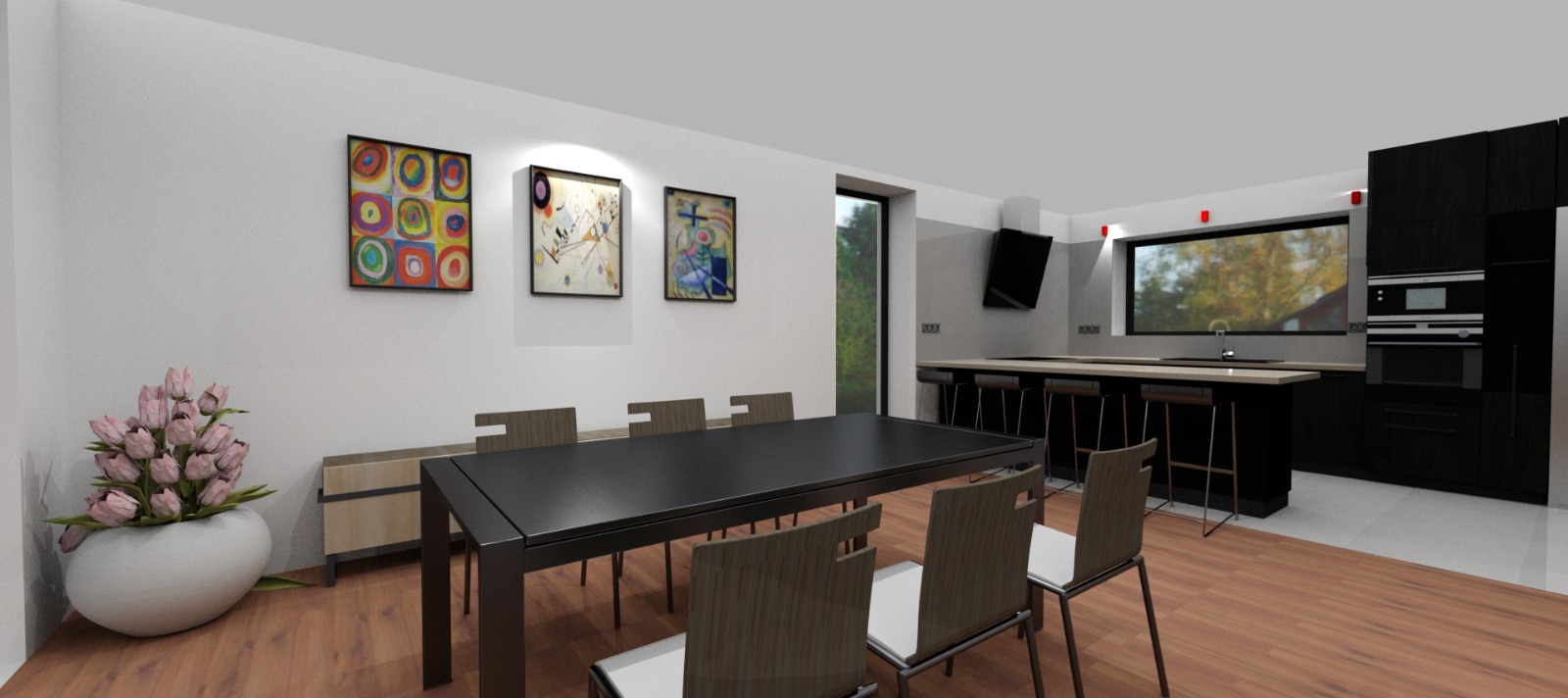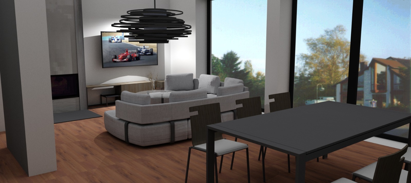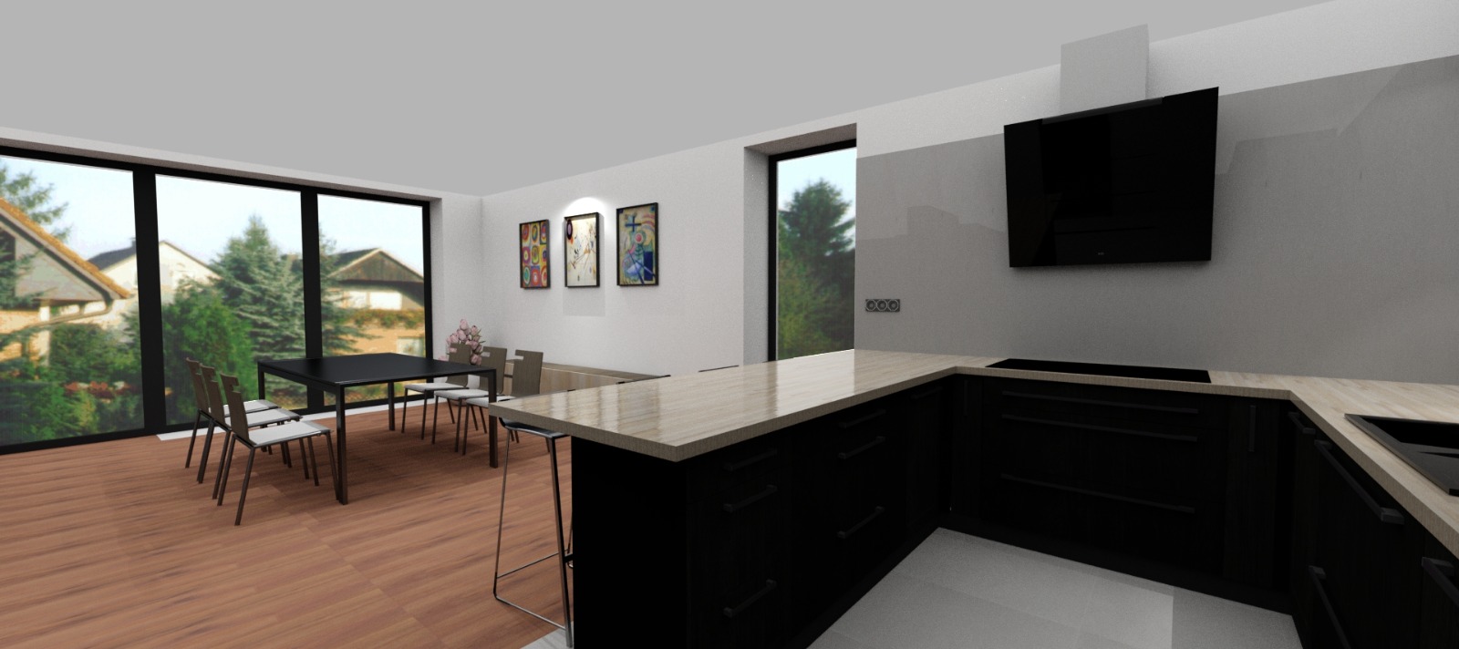 • Návrh kuchyně s jídelnou a obývákem do projektu Zahrady Bohdalec