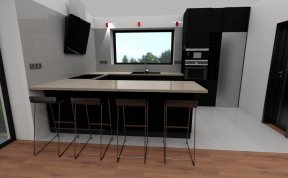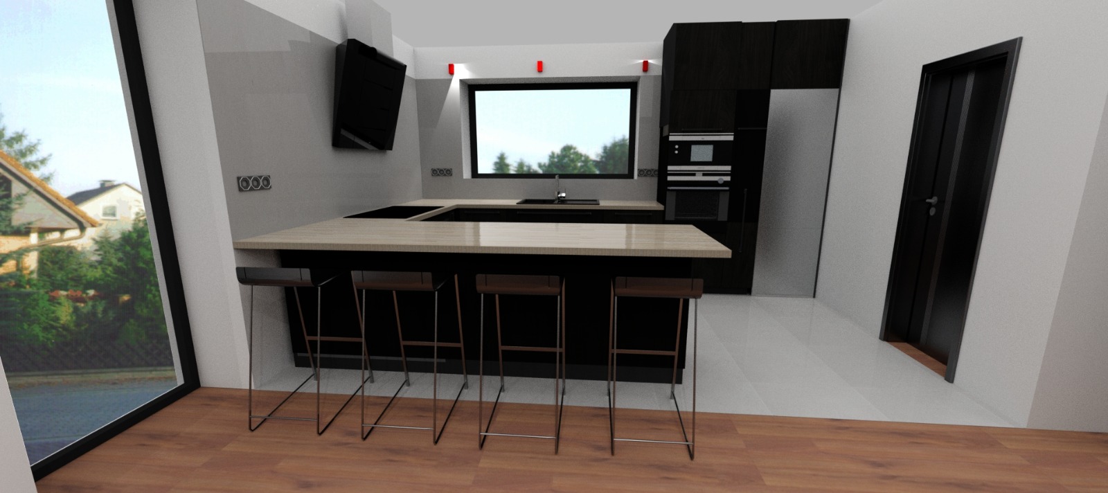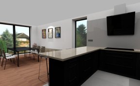 • Návrh černé industriální kuchyně do RD v Loděnici