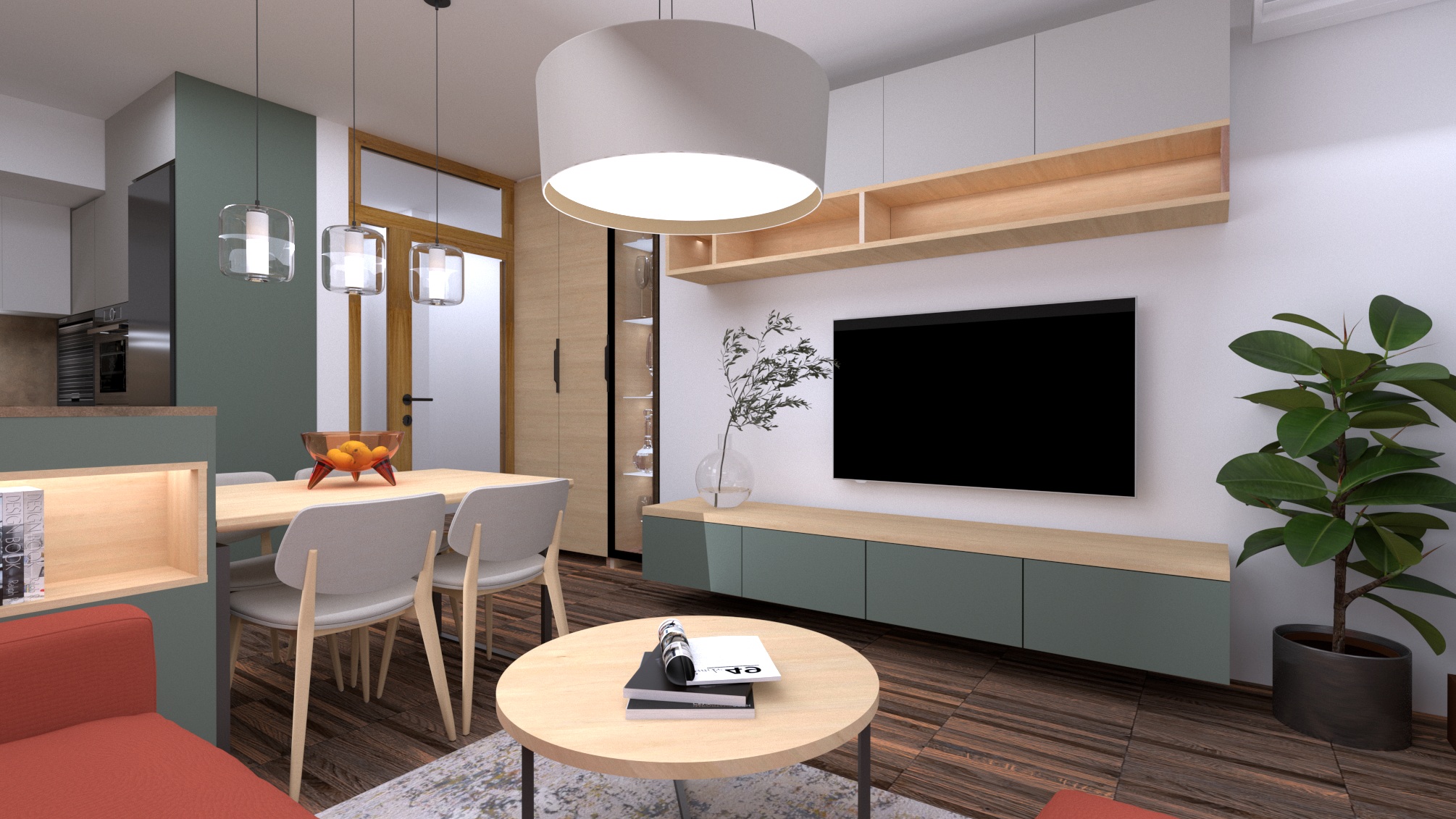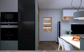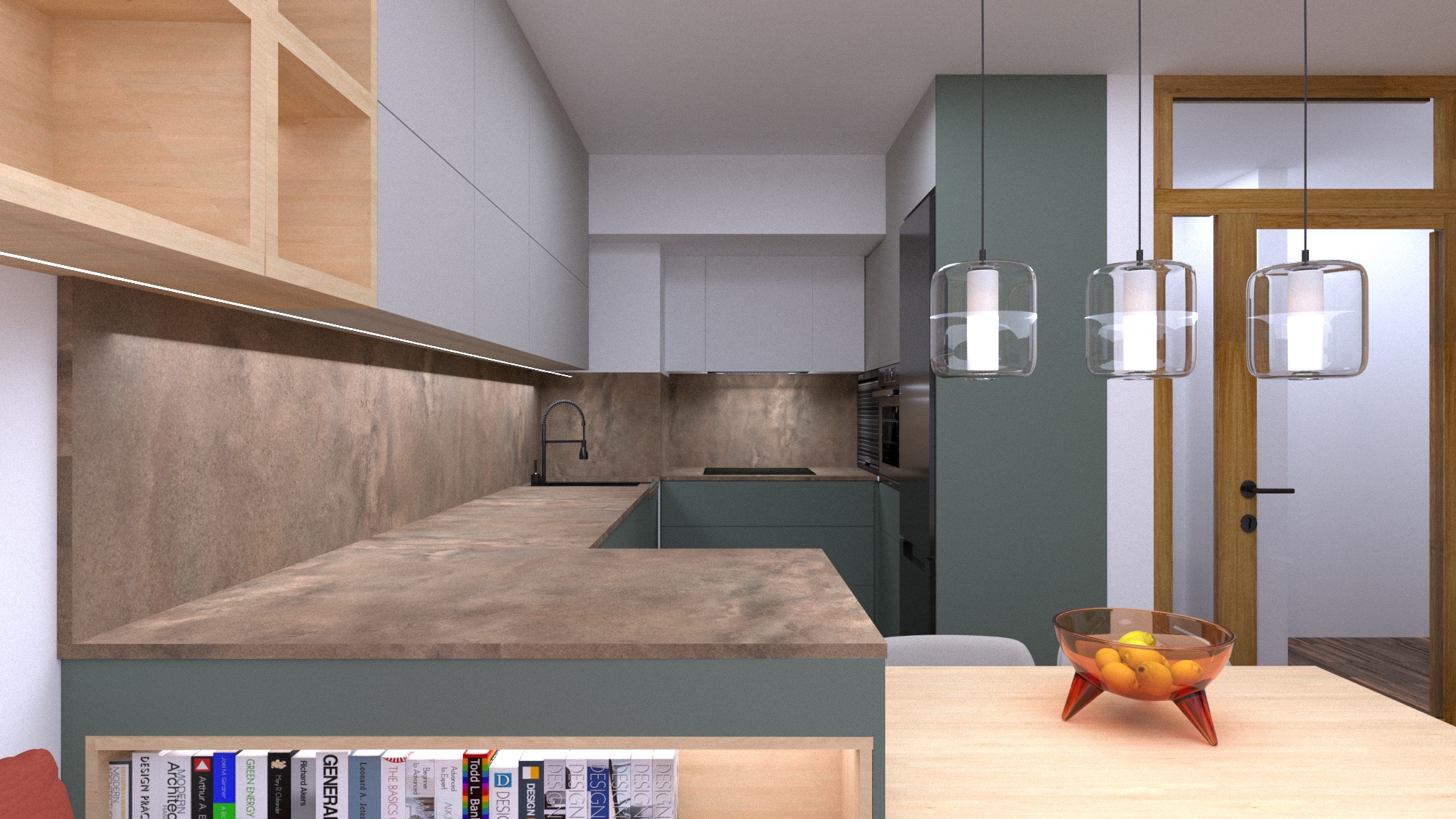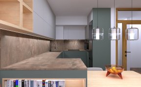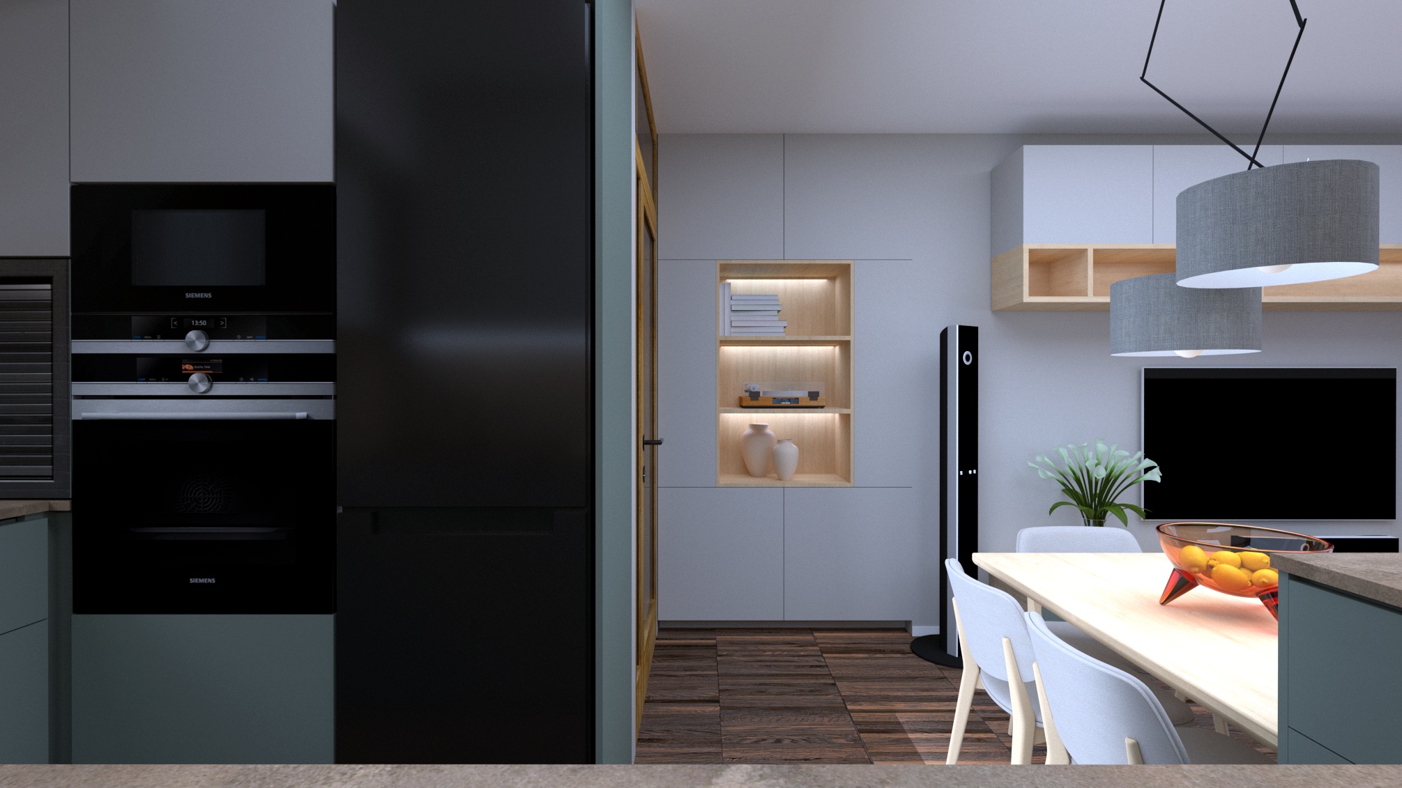 • Návrh a realizace zelené kuchyňské linky a koupelny do bytu v Praze-Hájích