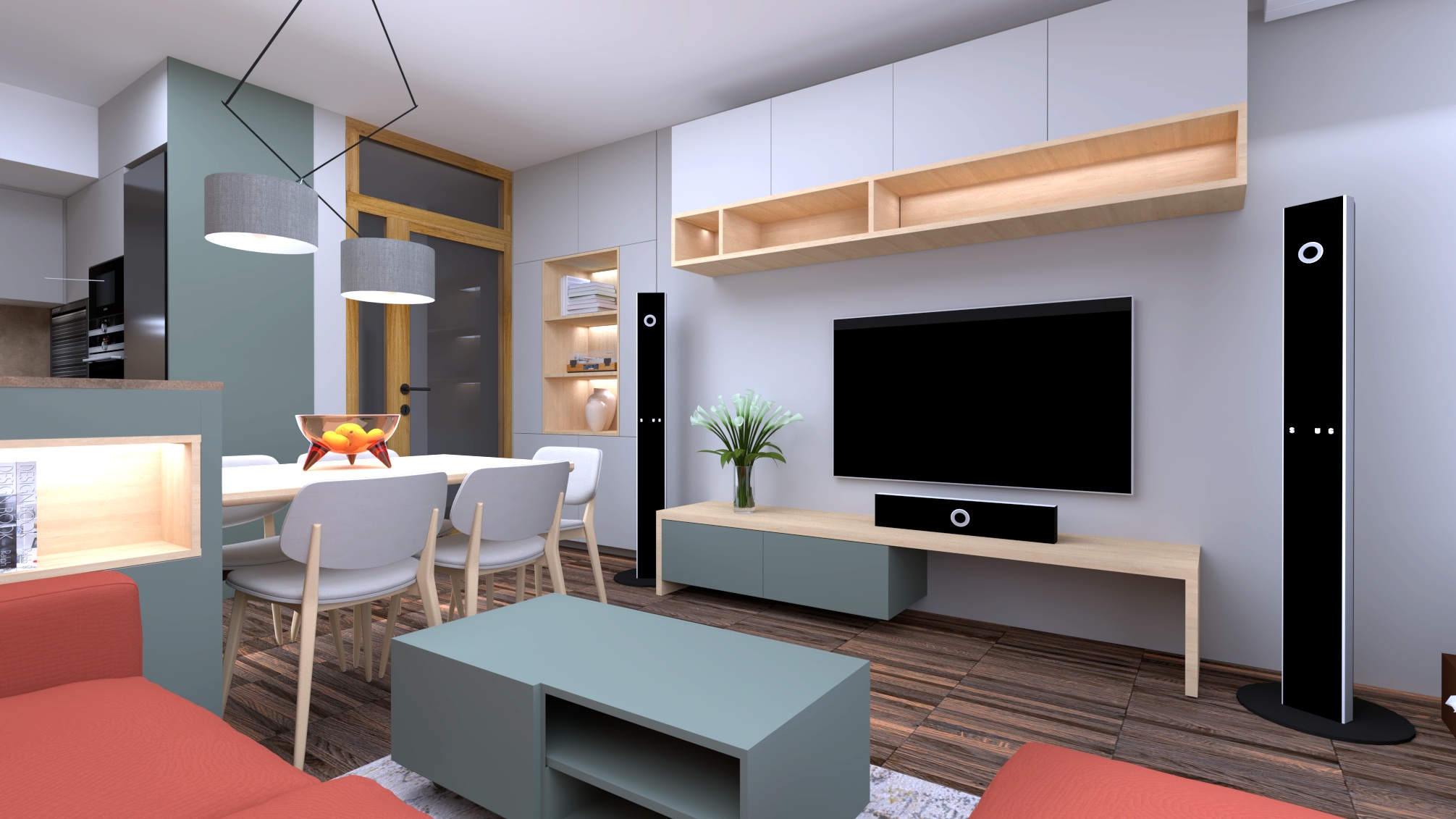 • Realiazce obývacího pokoje spojeného s kuchyní