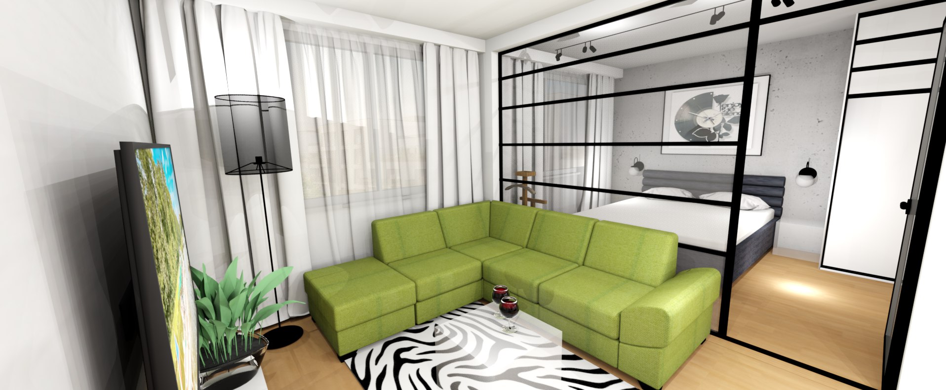 Návrh ideového a barevného řešení garsonky