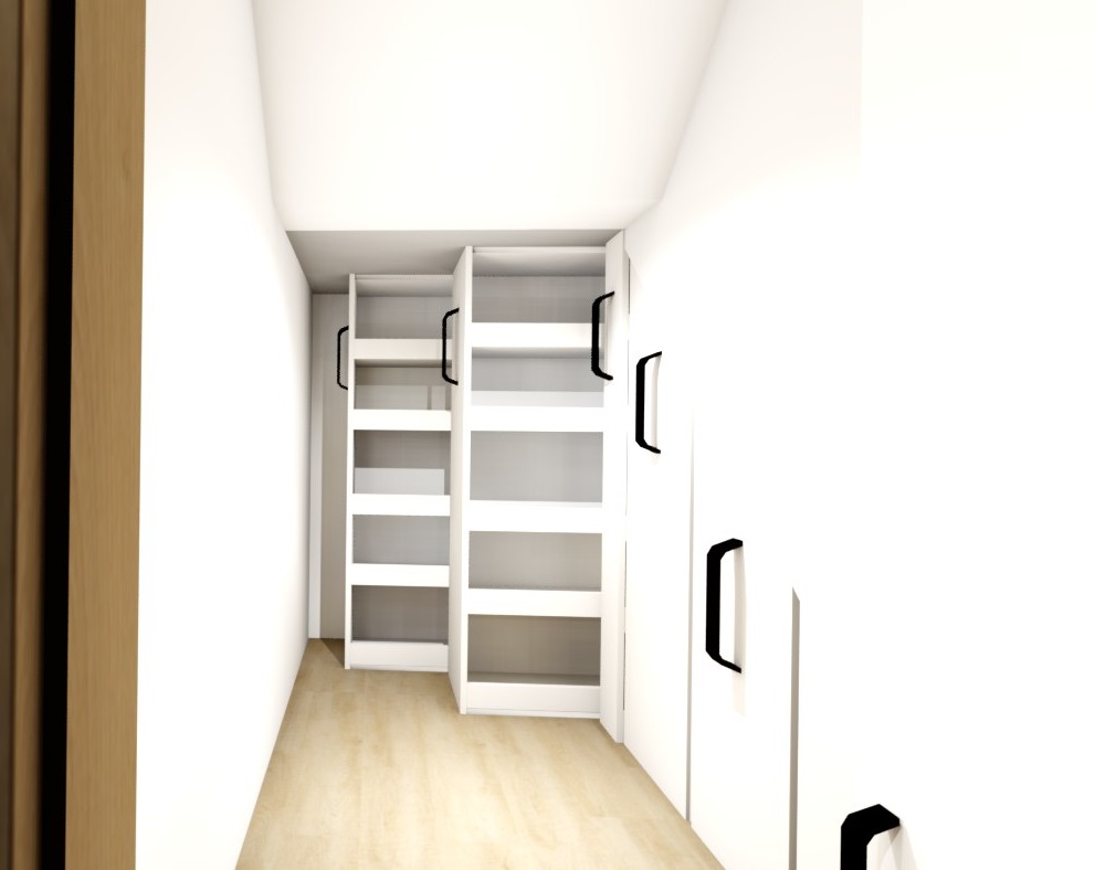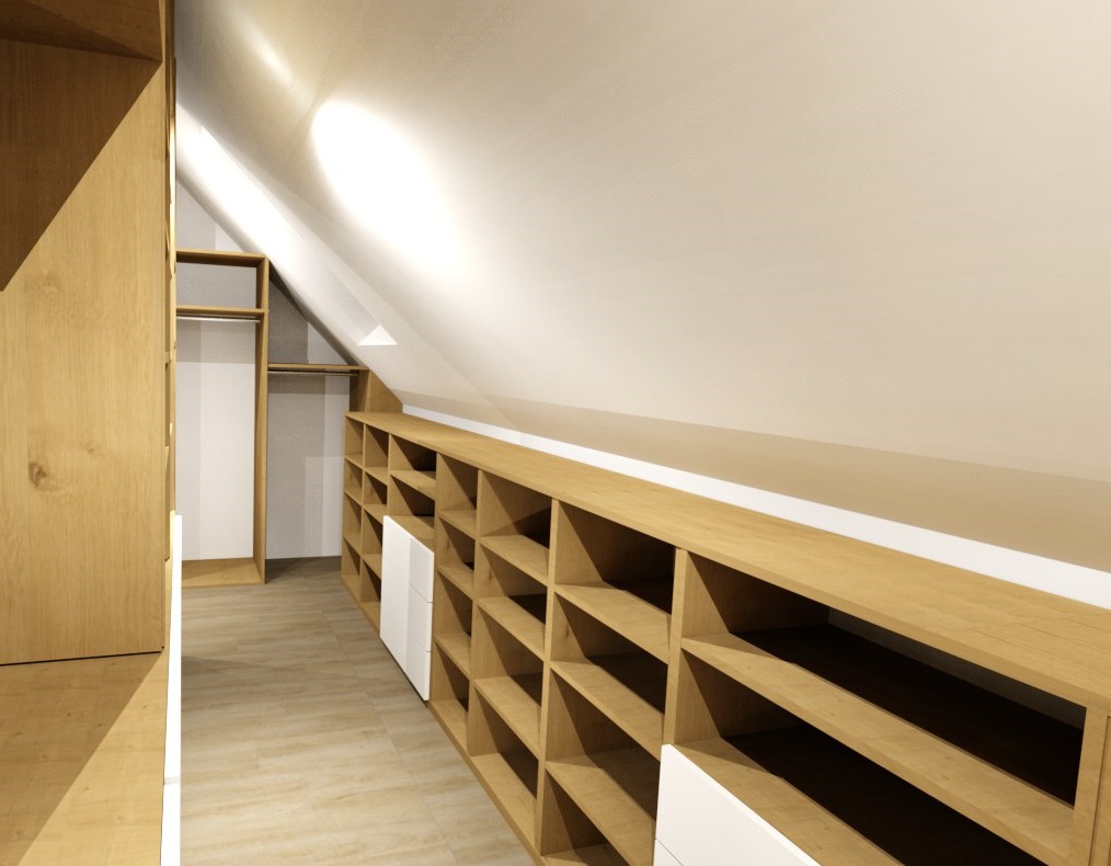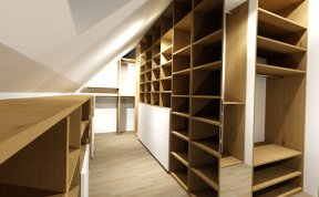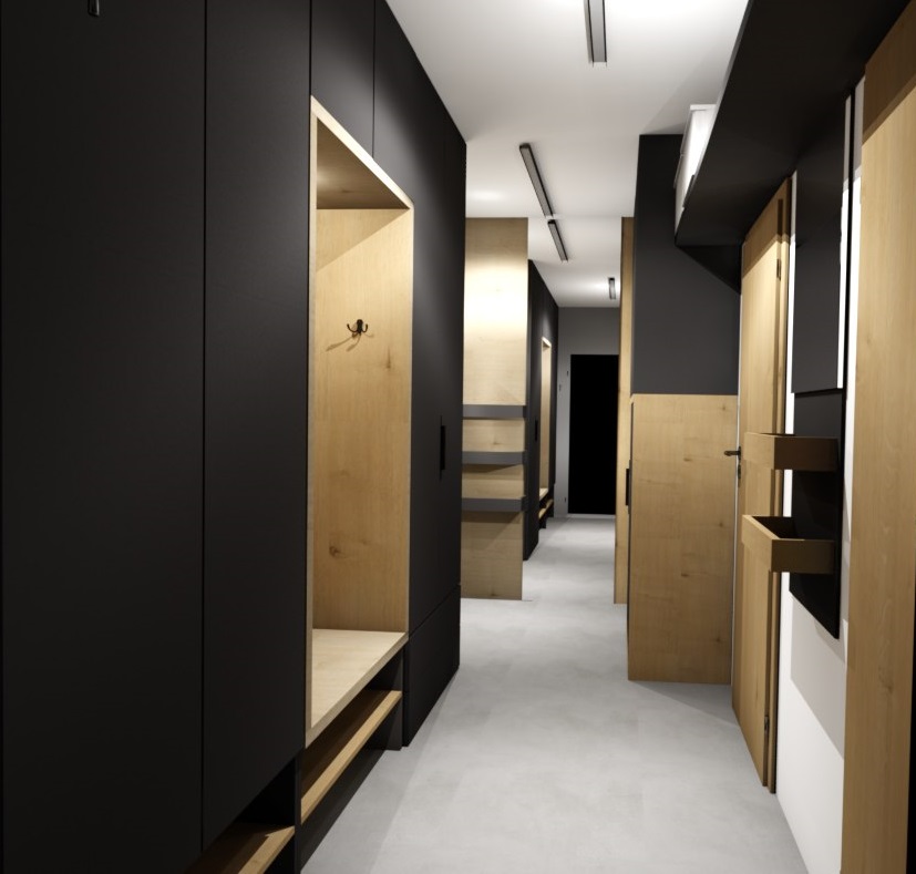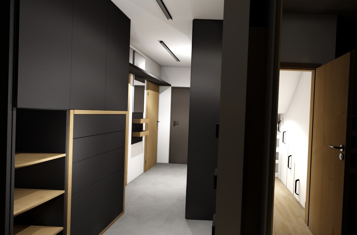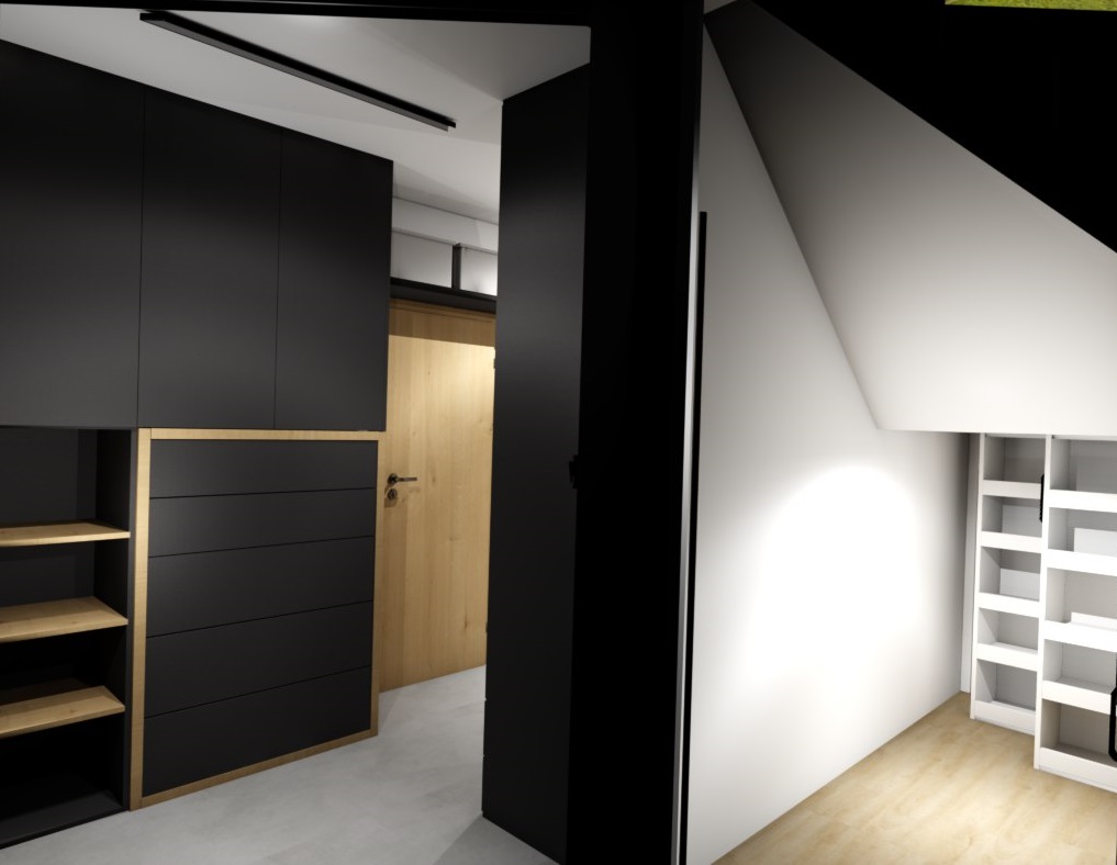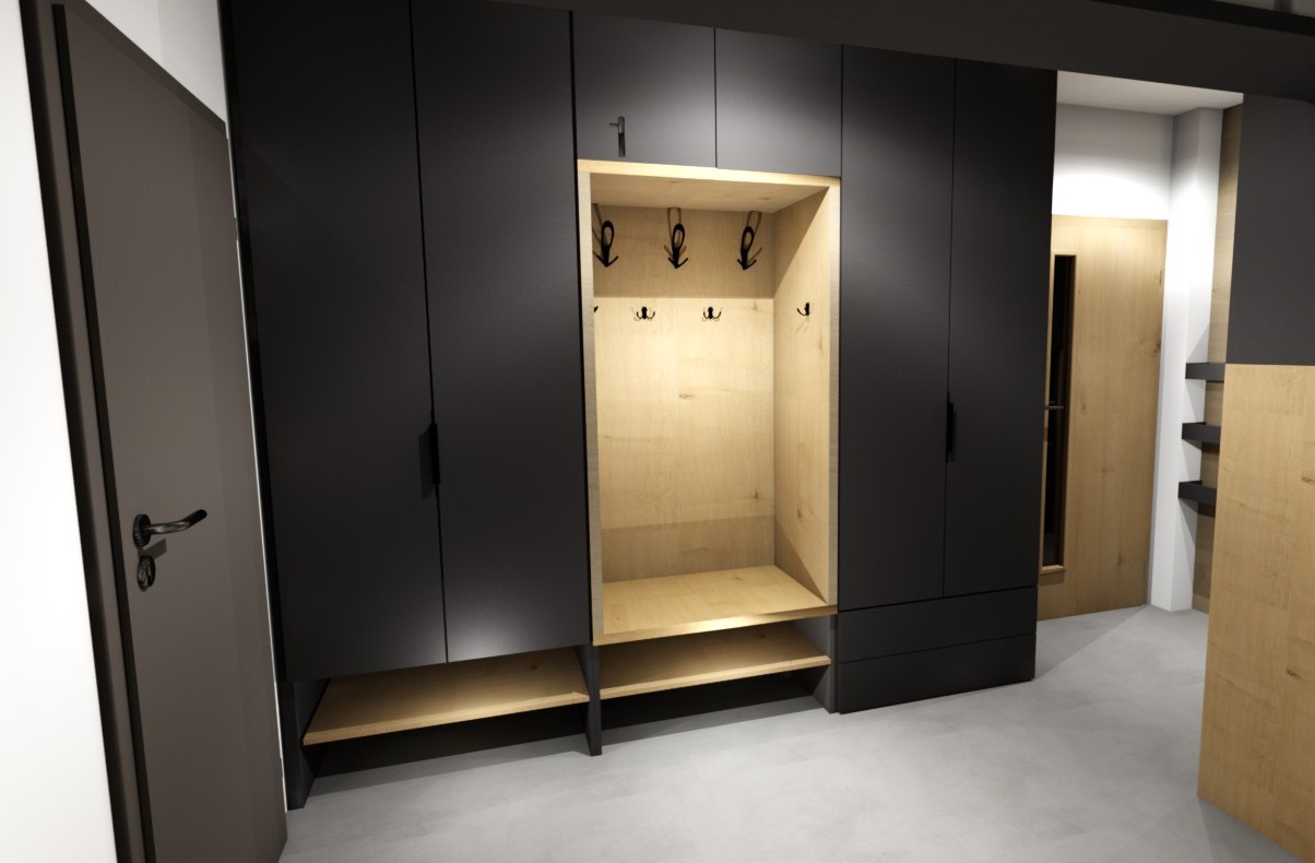 • Návrh šatny, předsíně a úložného prostoru pod schody