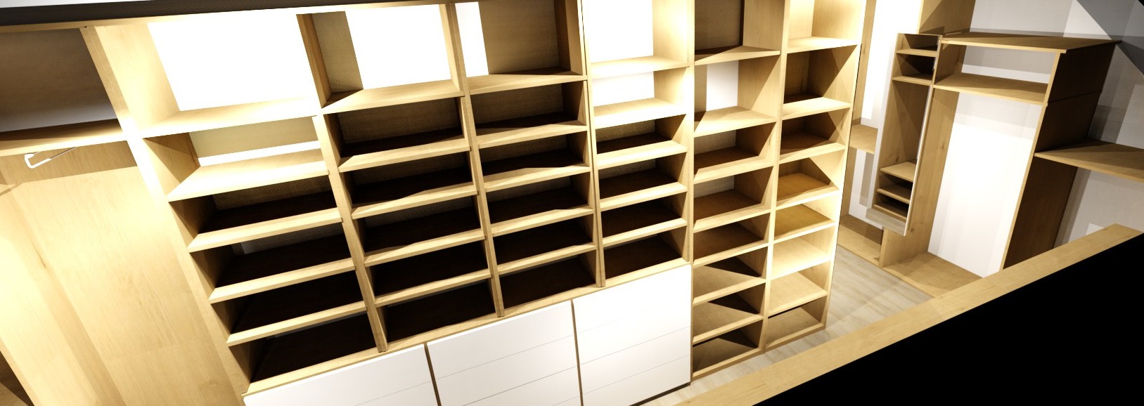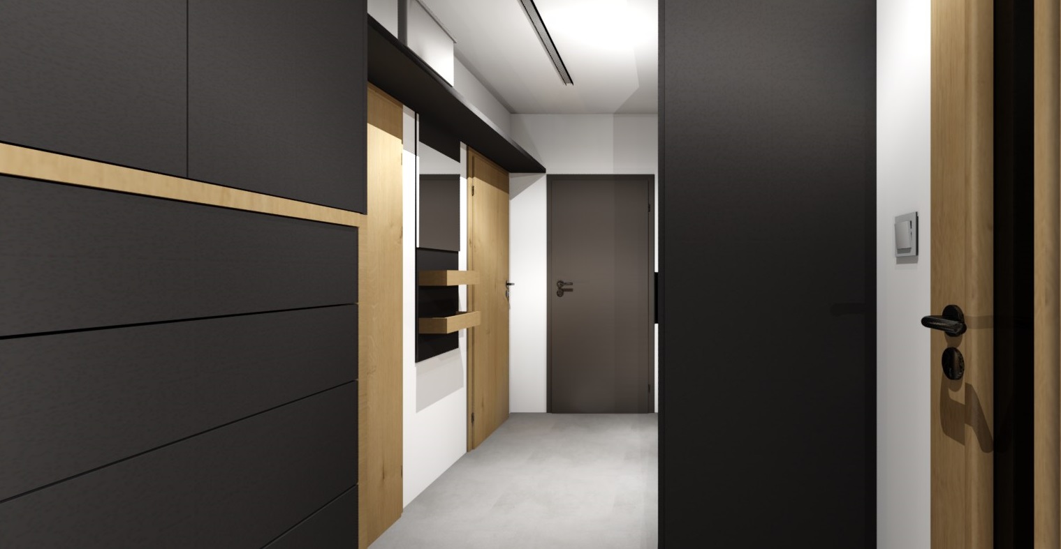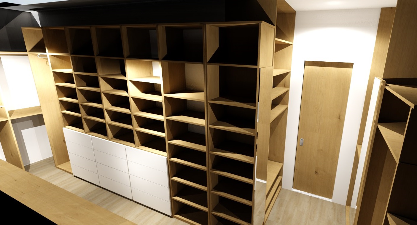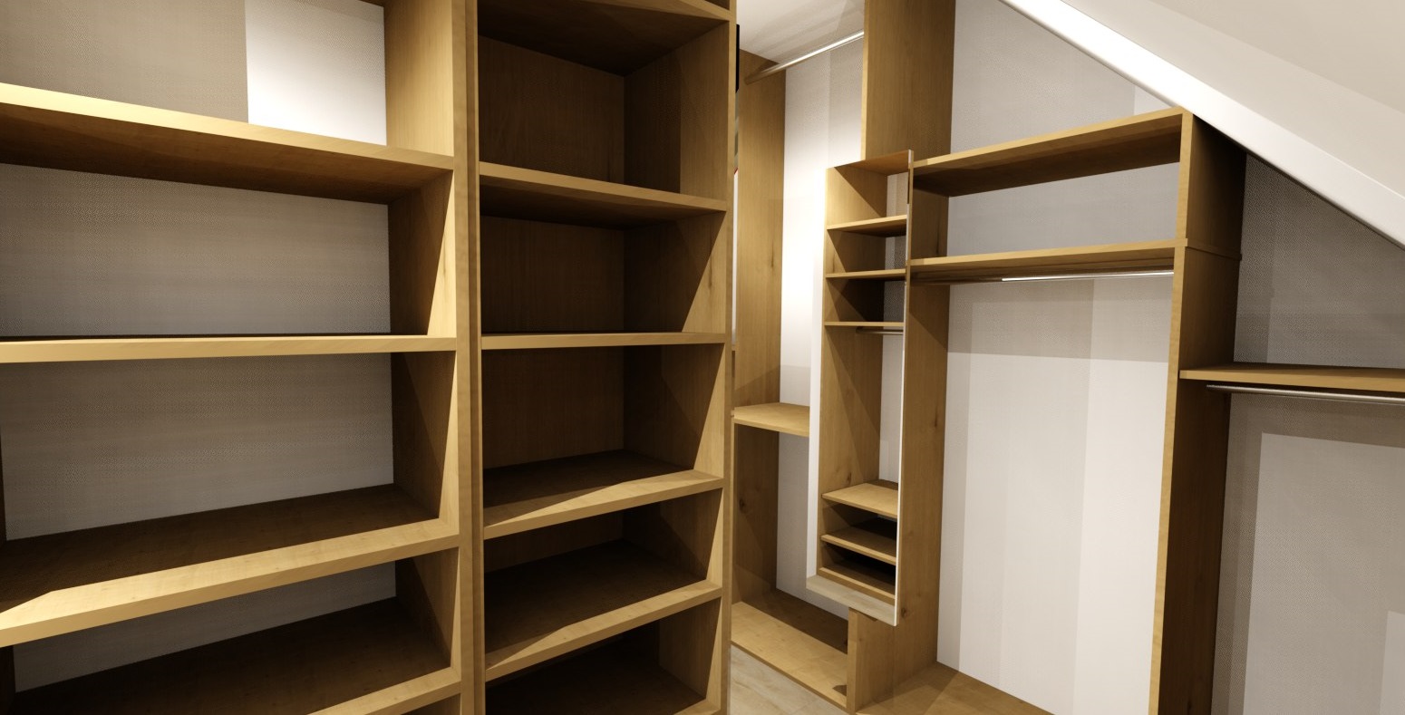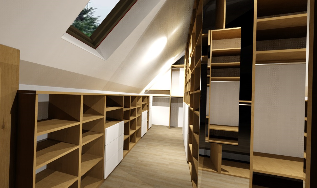 • Návrh šatny, předsíně a úložného prostoru pod schody
