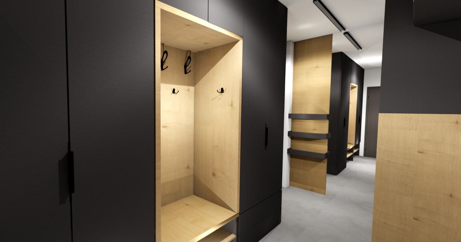 Návrh šatny, předsíně a úložného prostoru pod schody
