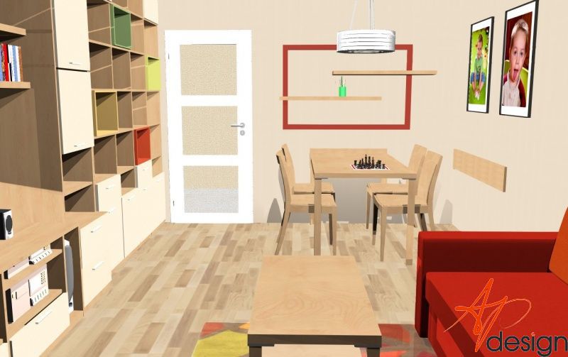 • Návrh a realizace obývácího pokoje, jídelnou a hracím koutem