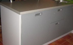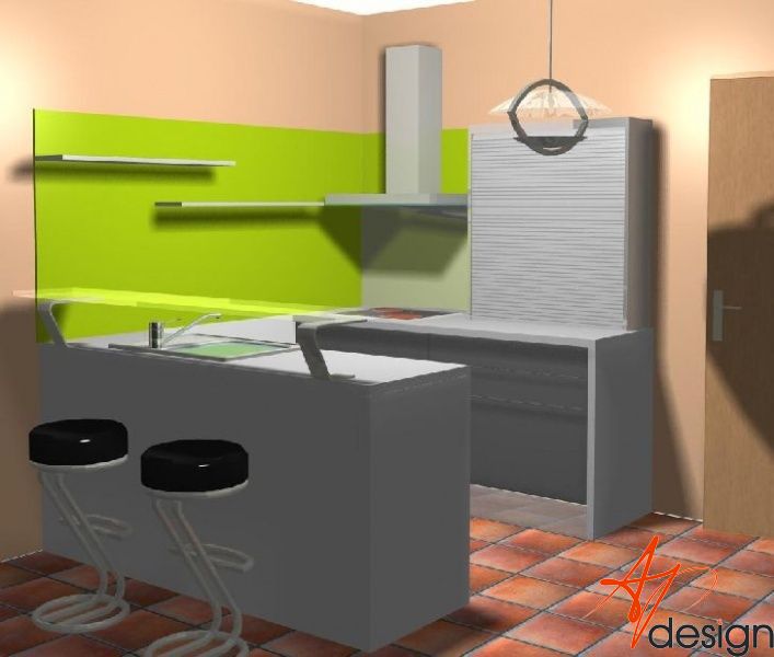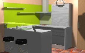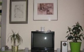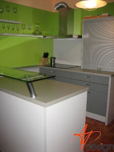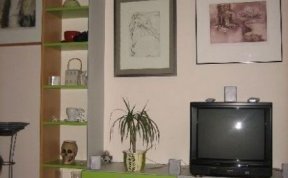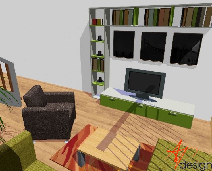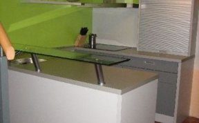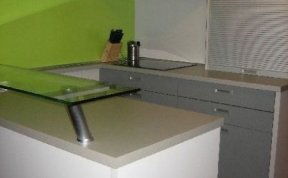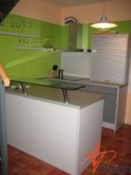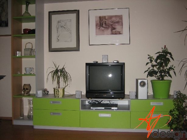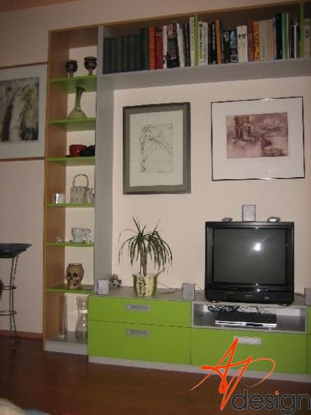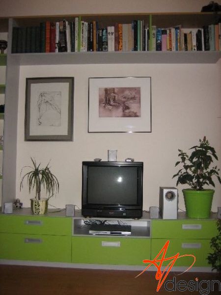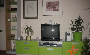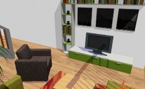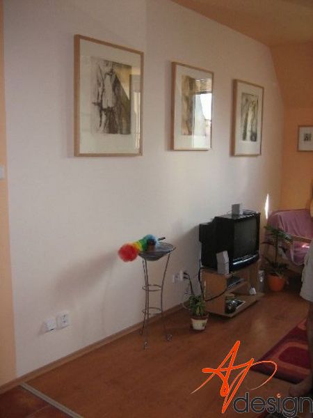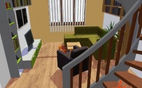 Klient již v mezonetovém bytě na okraji Prahy byldel nejakou dobu. Na doporučení kolegyně nás oslovil s žádostí o změnu celkového charakteru přízemí. Hned z prvních tří návhů si vybral koncept kuchyně ve dvou liniích, která byla navržená v šedo - zelené kombinaci. Tomuto pak byl podřízen i styl obývacího pokoje. Klient má rád grafiky, takže jsme počítali s jejich umístěním v rámci obývací stěny s knihovnou. I po instalaci televize, zůstal velký prostor na umístění již zmíněných grafik. Spolupráce s klientem pokračuje, kdy zpracováváme návrhy na patro, kde bude ložnice s pracovnou.