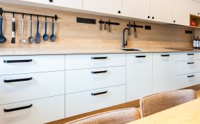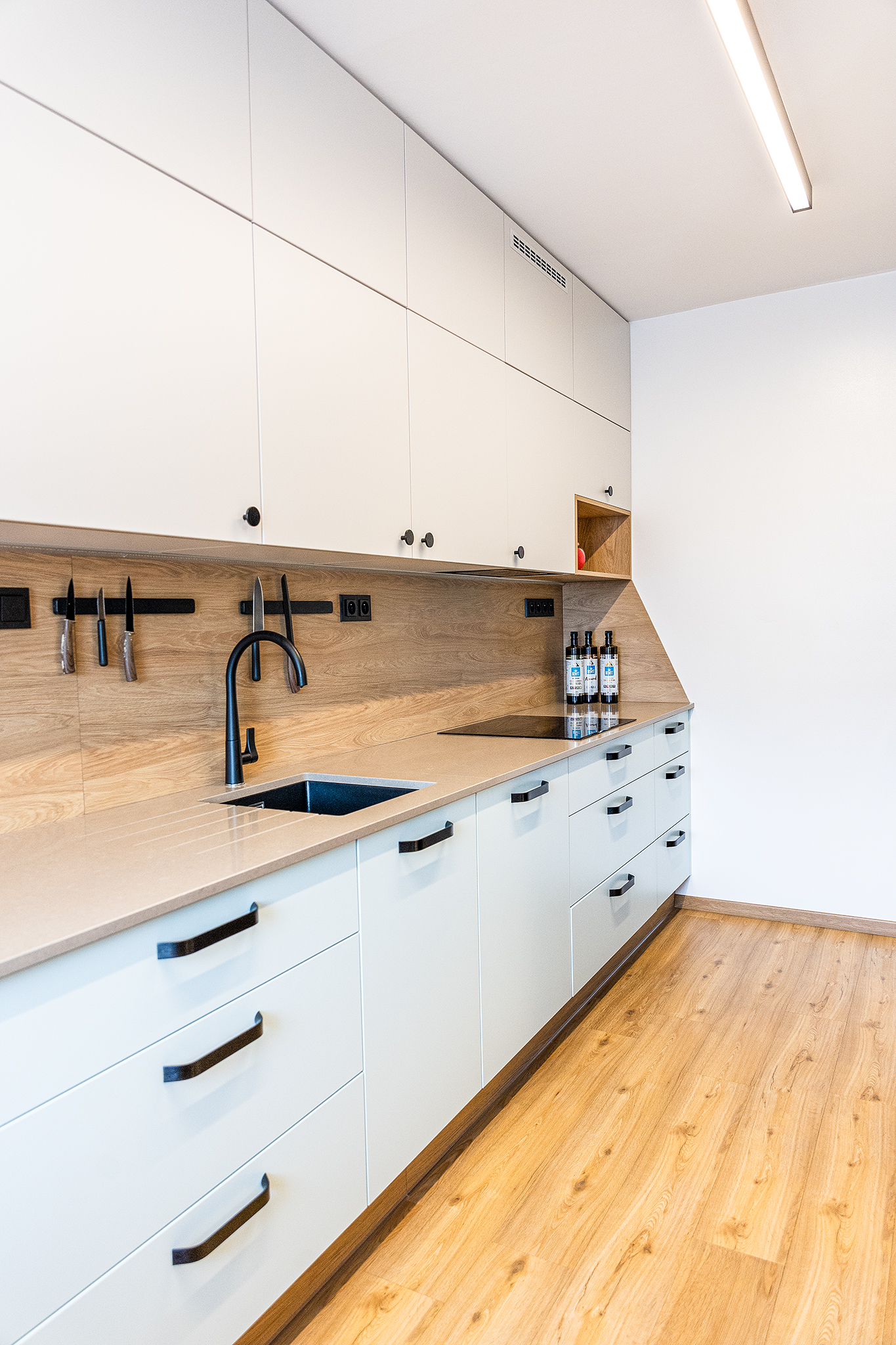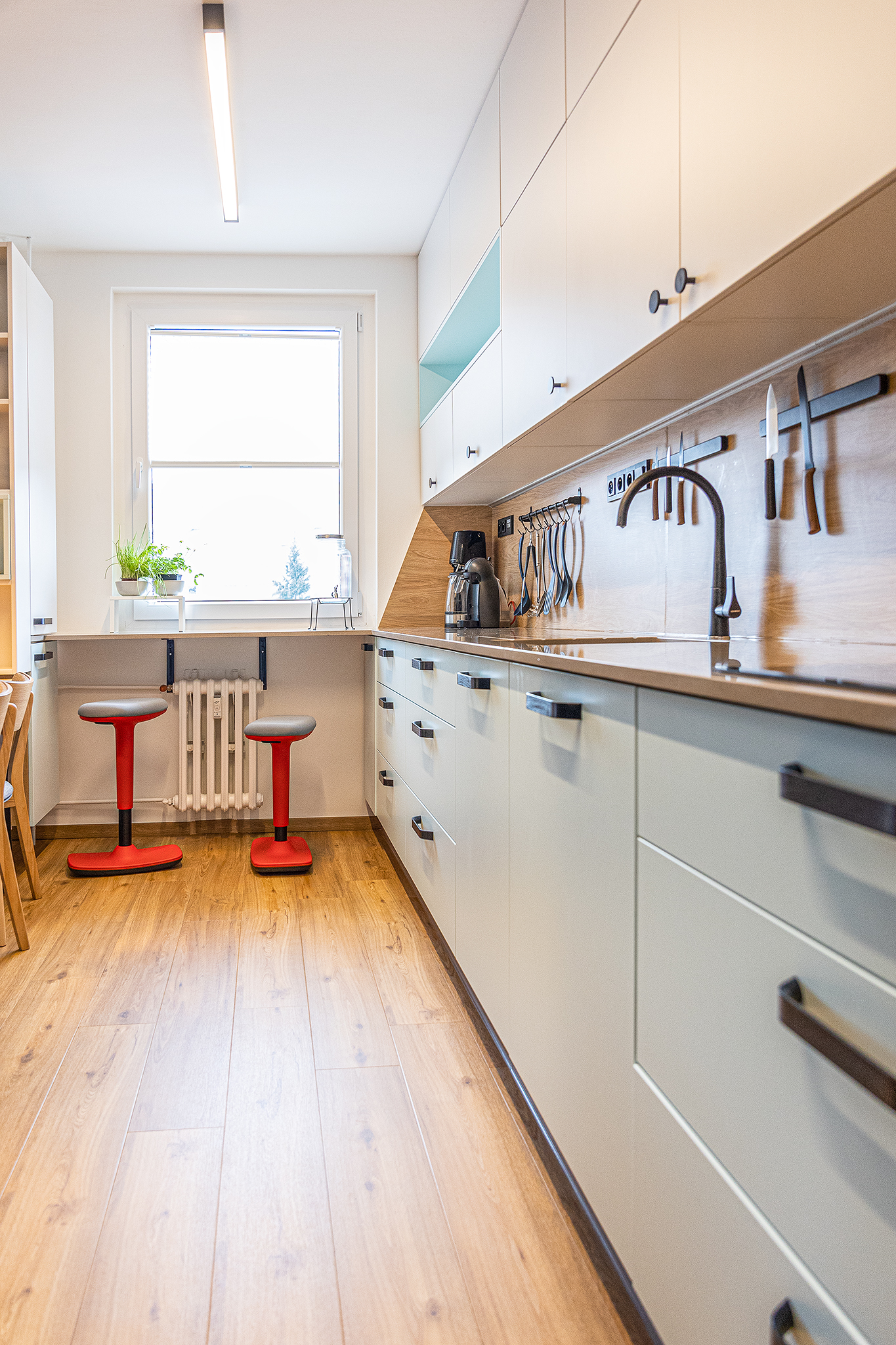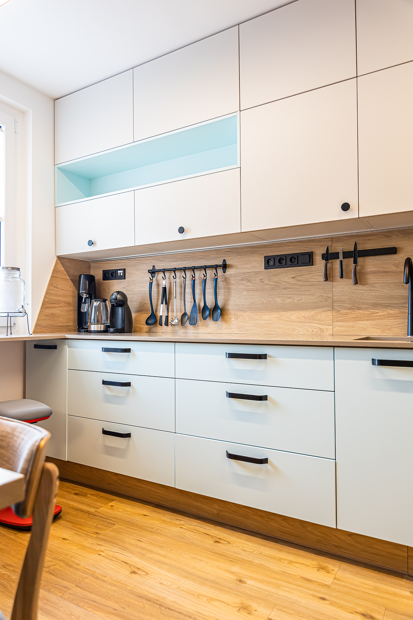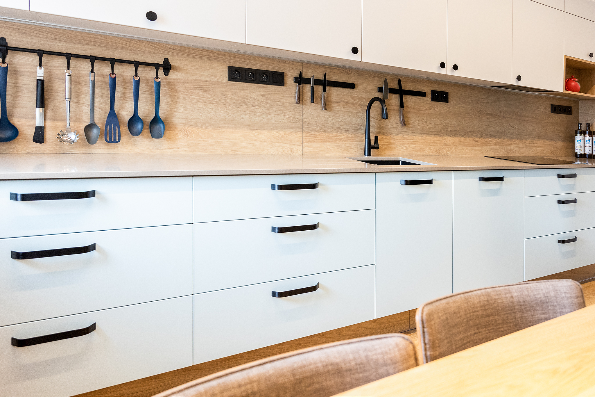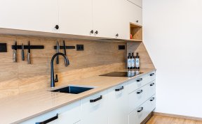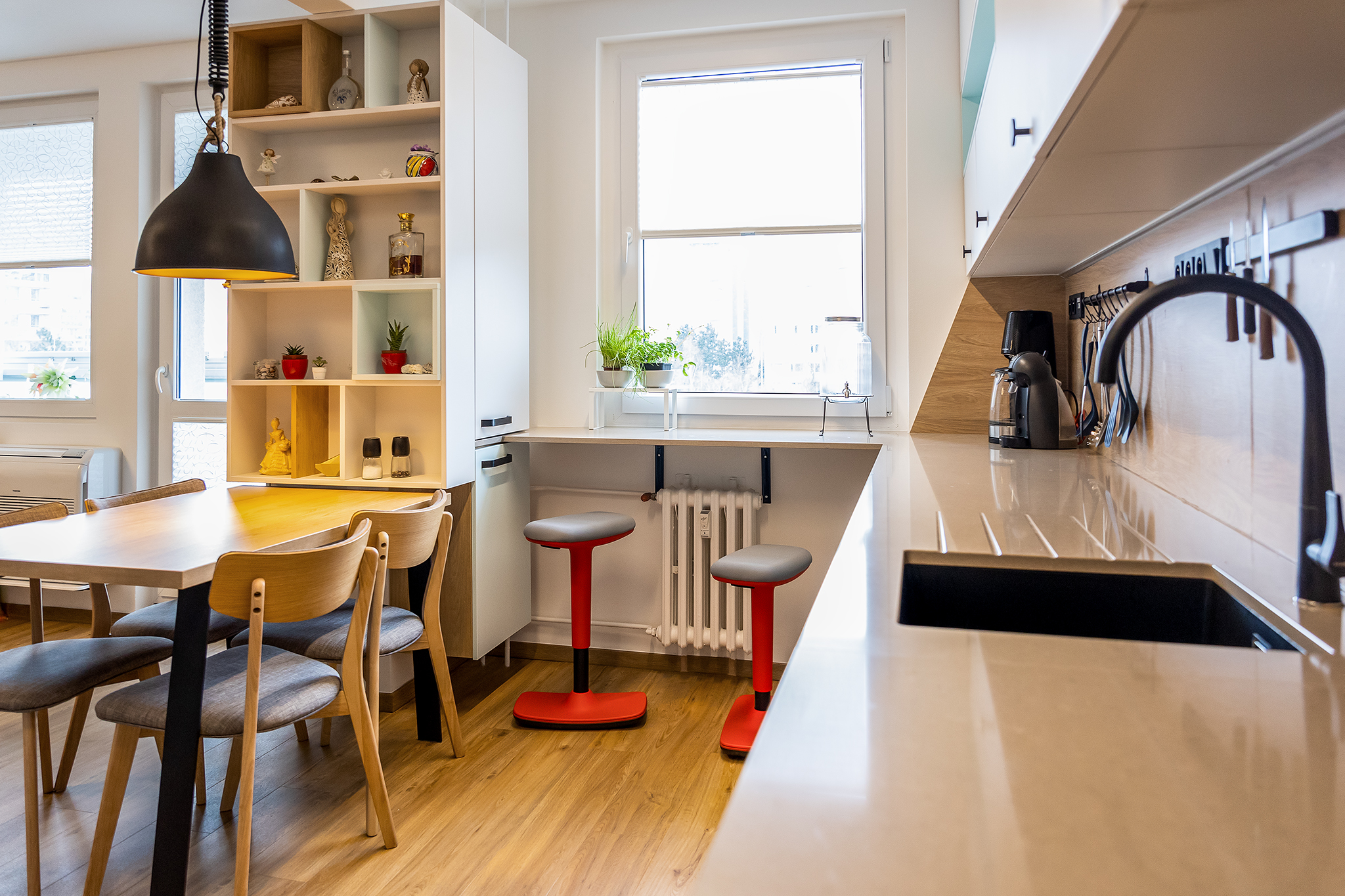 Kuchyně byla dalším skvělým výsledkem její práce. Alžběta se soustředila na vytvoření ergonomického prostoru, který je radost používat. Výsledkem je kuchyně, která je moderní, stylová a velmi praktická pro každodenní život.