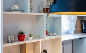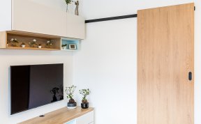 Návrh dětského pokoje nás obzvláště nadchnul. Alžběta vytvořila prostor, který je hravý a zároveň praktický pro potřeby syna teenagera. Syn má dostatek úložného prostoru, ale také dost místa na relax a učení. Barevné schéma a výběr nábytku dokonale odpovídají našemu vkusu a zároveň vytvářejí útulnou atmosféru.